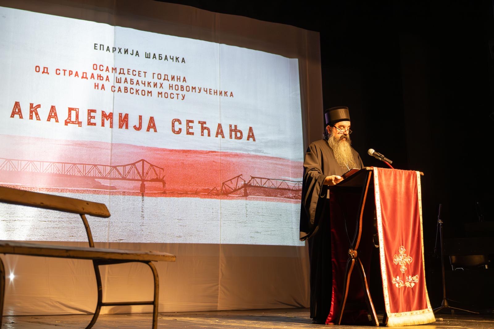 За нас, православне хришћане, та два вида памћења – литургијско и културално – суштински су неодвојива и представљају јединство. Зато ћемо вечерас по први пут на овај начин, уметничким програмом, да поменемо и прославимо наше невино пострадале предке – мученике, надовезујући се тако на јучерашњи парастос њима. Ова академија сећања представља истовремено и позив свима нама, како у Шапцу тако и у другим градовима у Србији у којима су се догодили слични злочини, да не заборавимо невине жртве комунистичког терора, јер по речима блаженопочившег Патријарха Павла: Зло које је заборављено, сакривено и неокајано, постаје извориште нових зала.