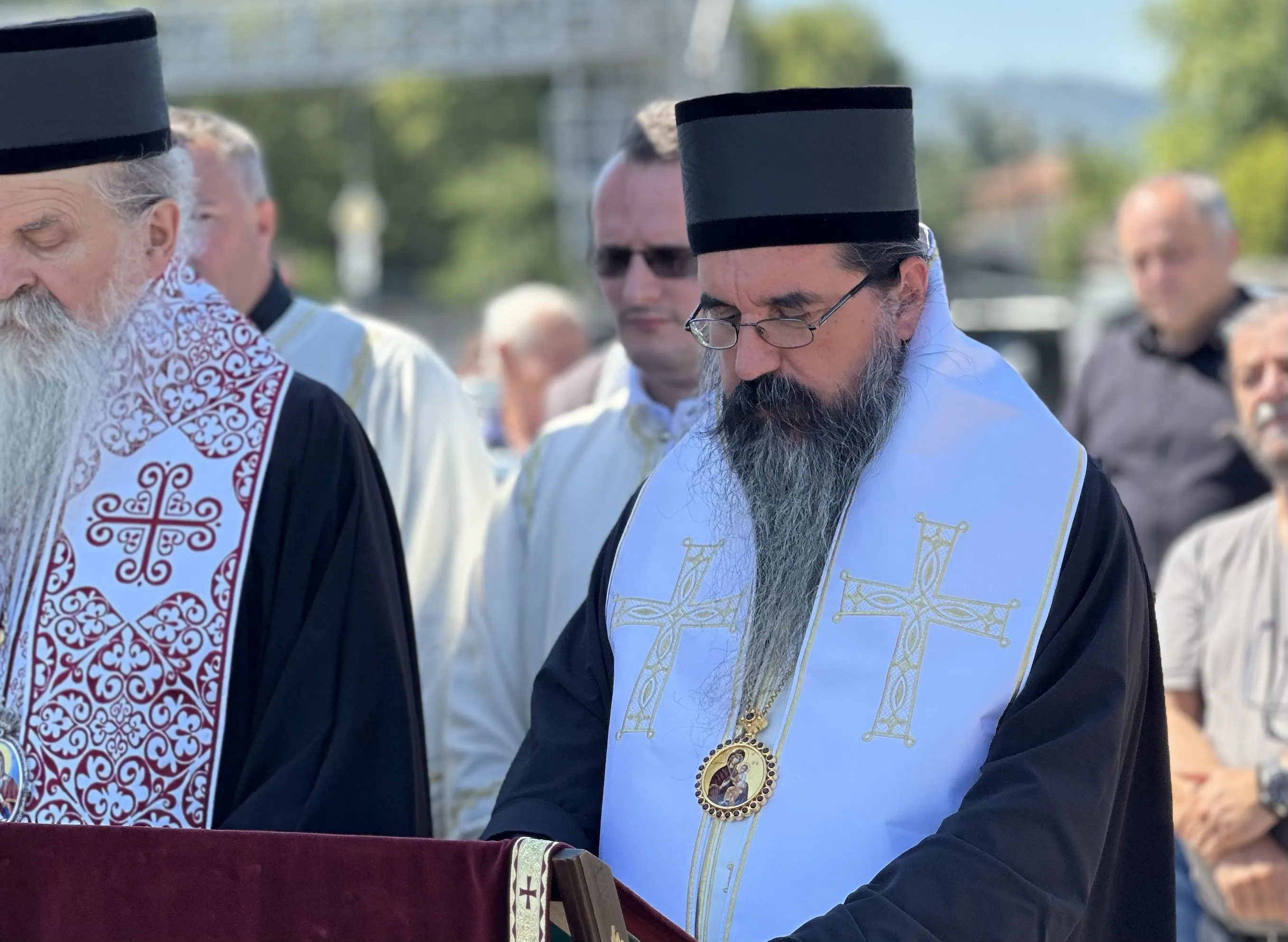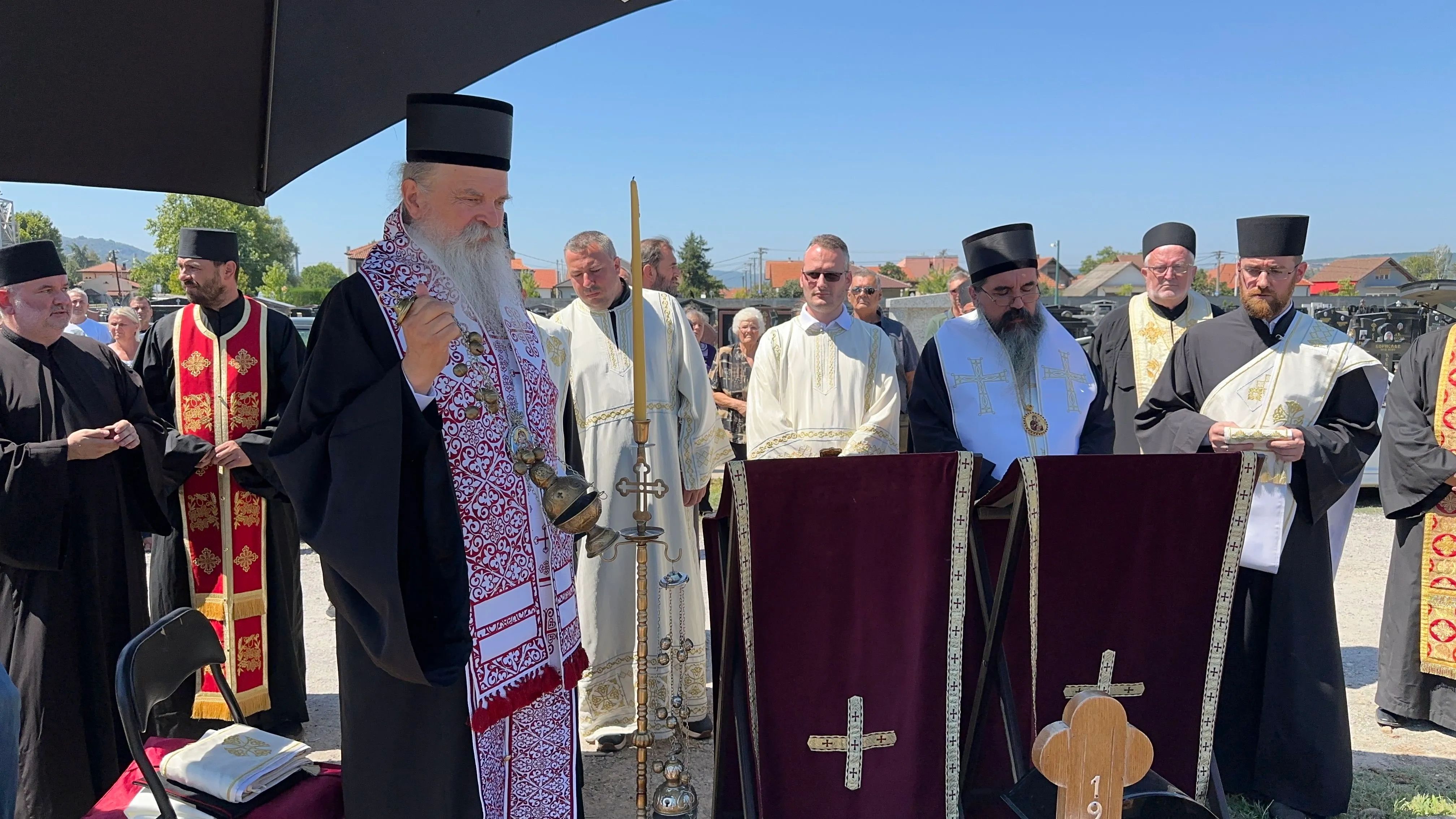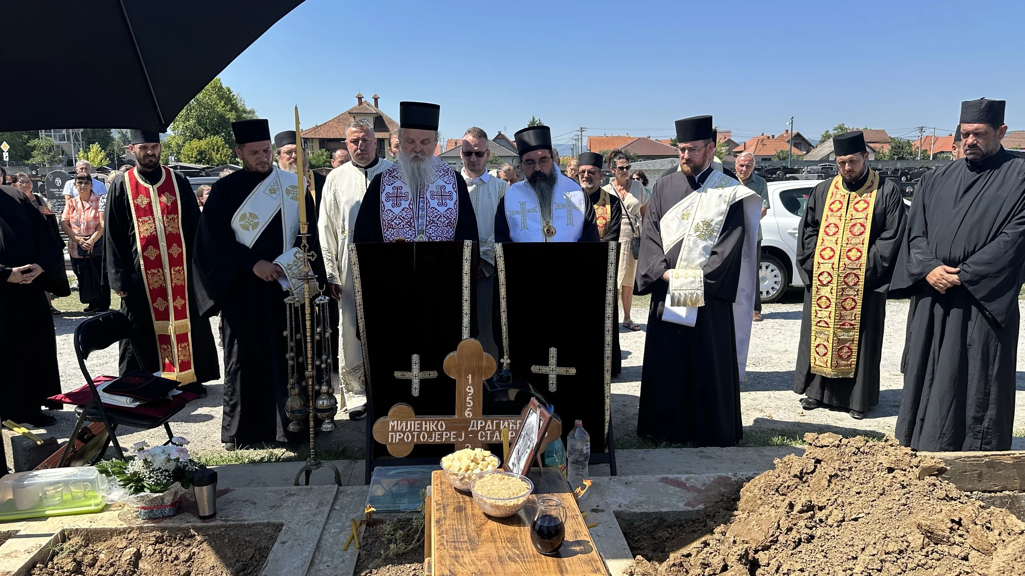 Његово Високопреосвештенство Митрополит рашко-призренски г. Теодосије и Његово Преосвештенство Епископ шабачки г. Јеротеј служили су 14. августа 2025. године на Градском гробљу у Лозници четрдесетодневни парастос протојереју-ставрофору Миленку Драгићевићу, умировљеном пароху великохочанском.