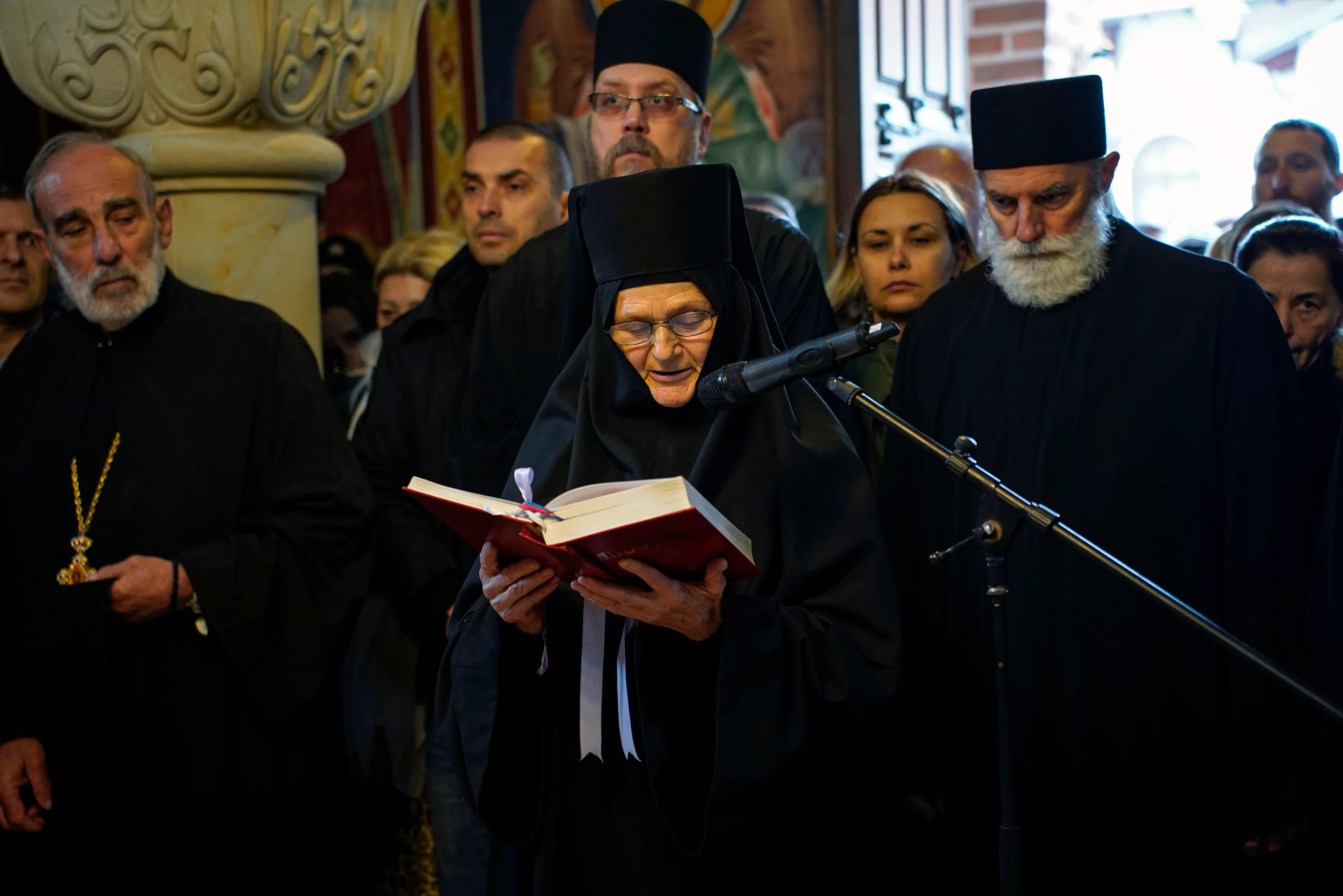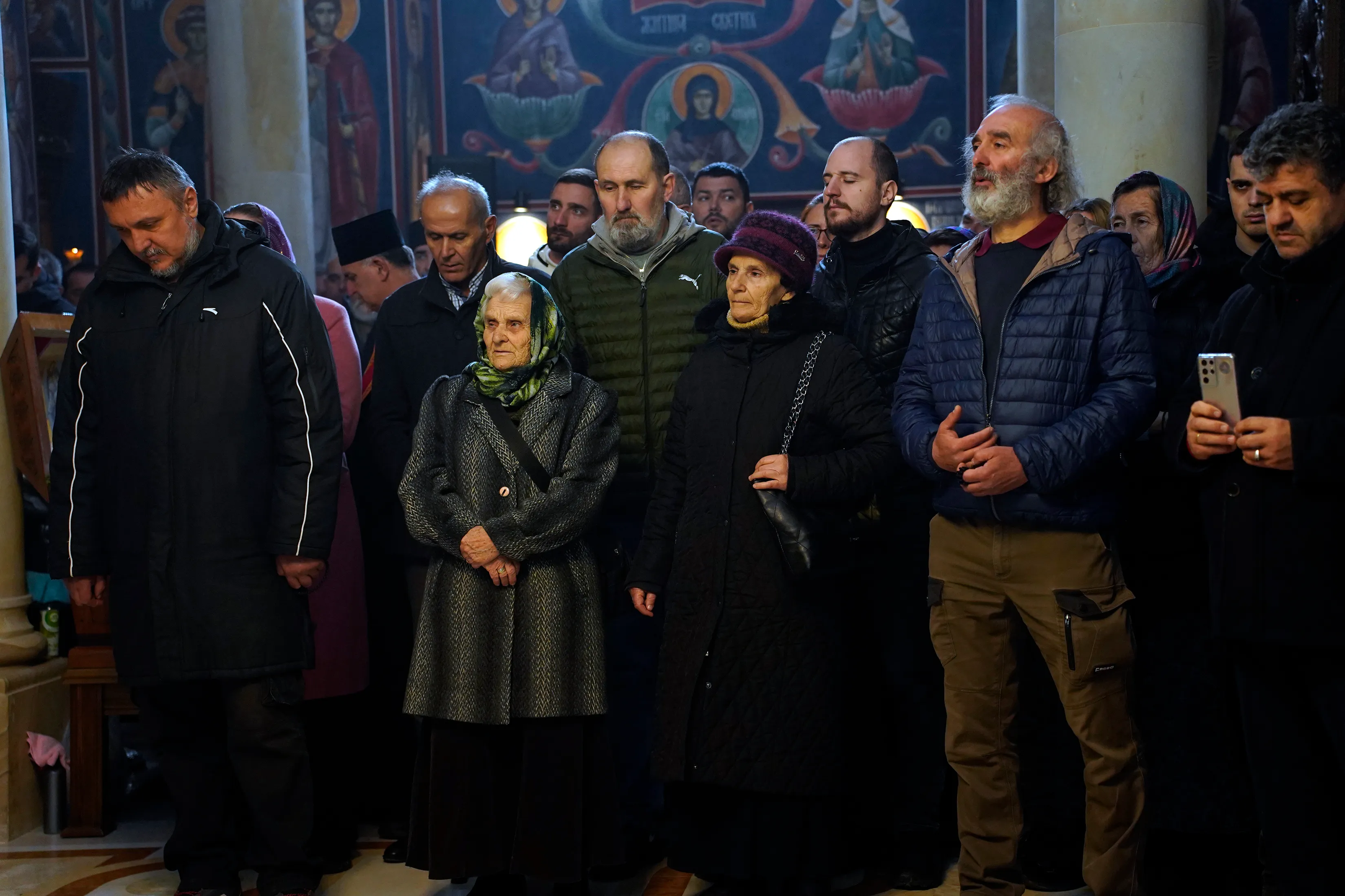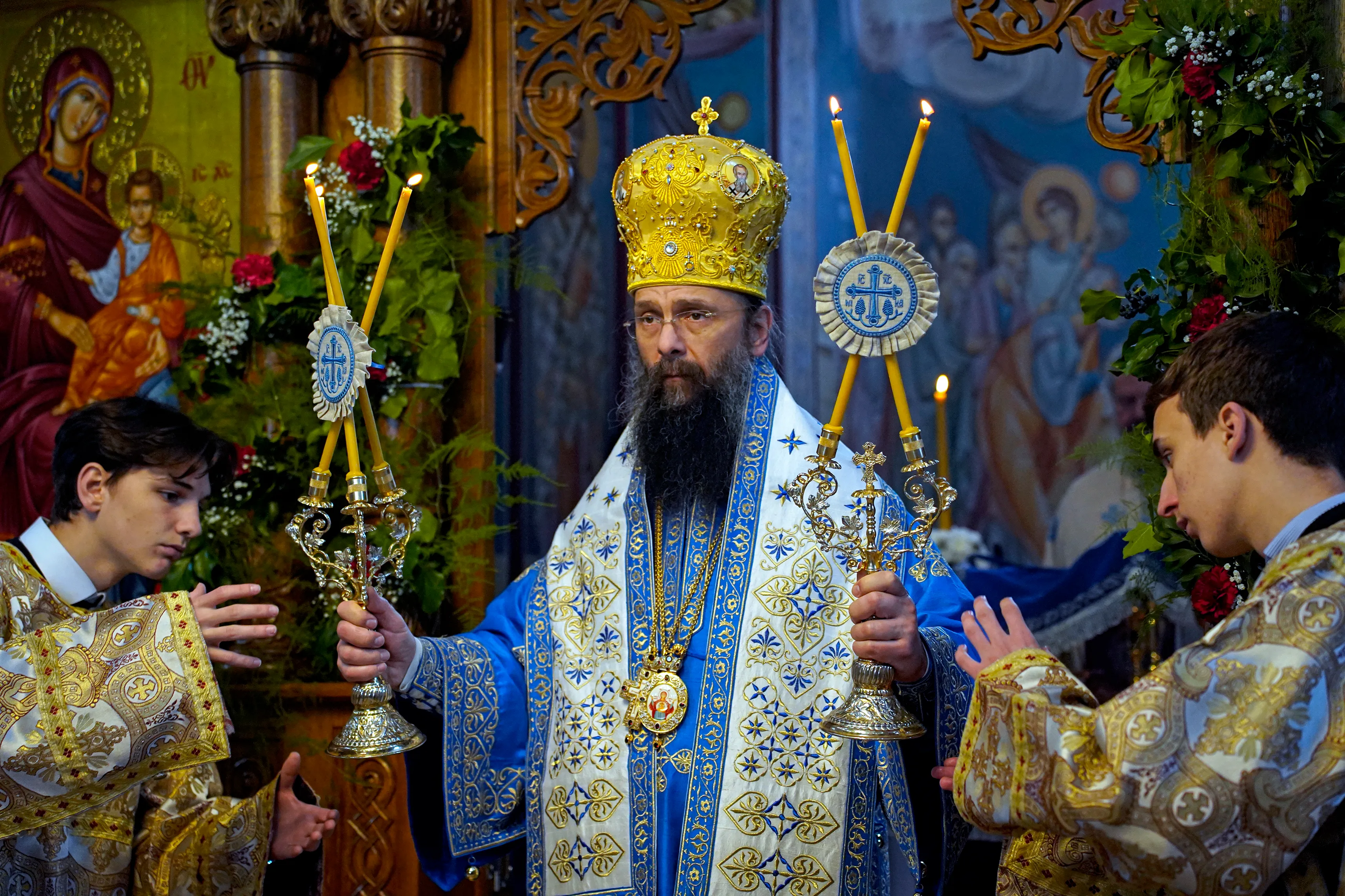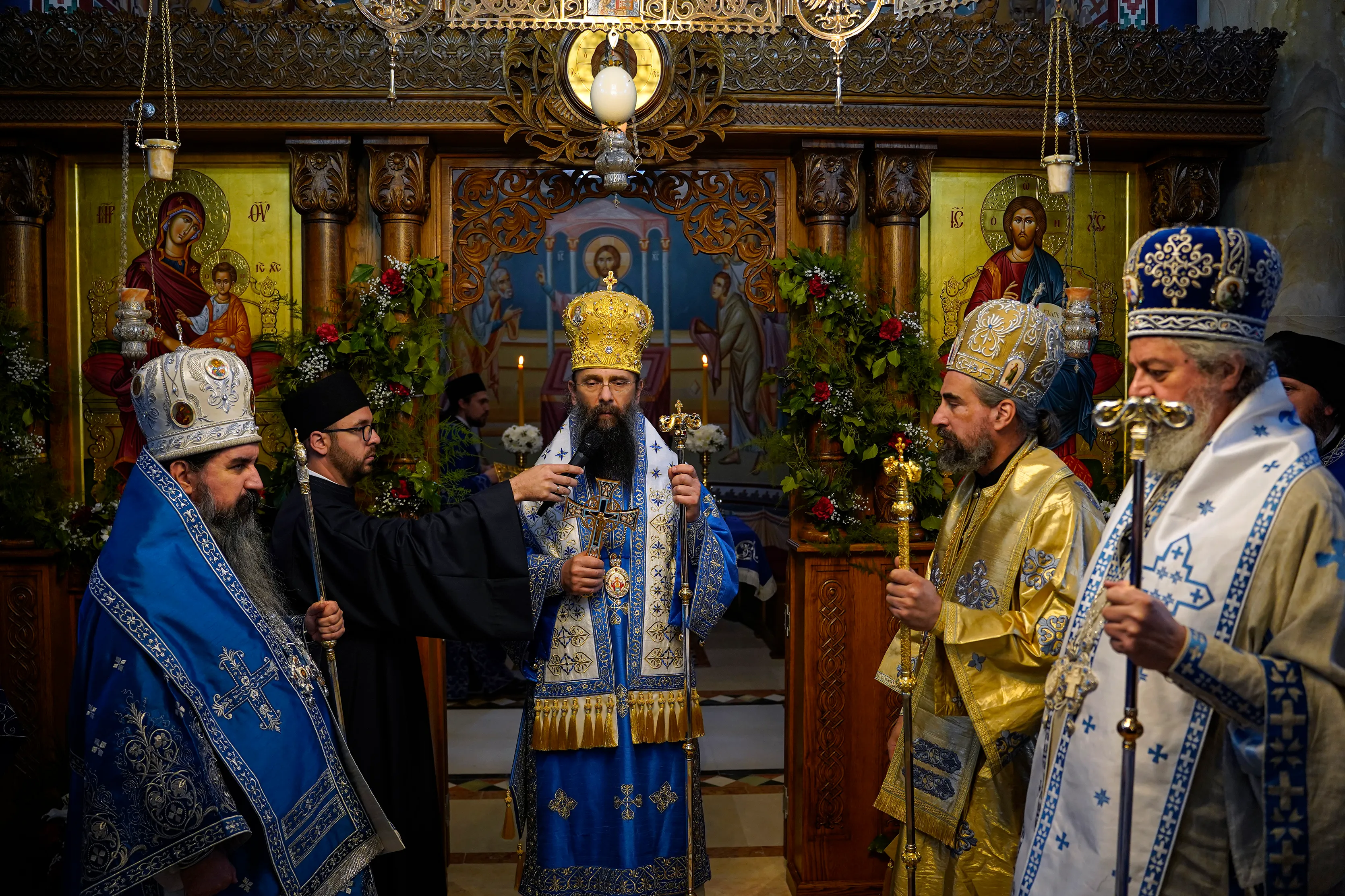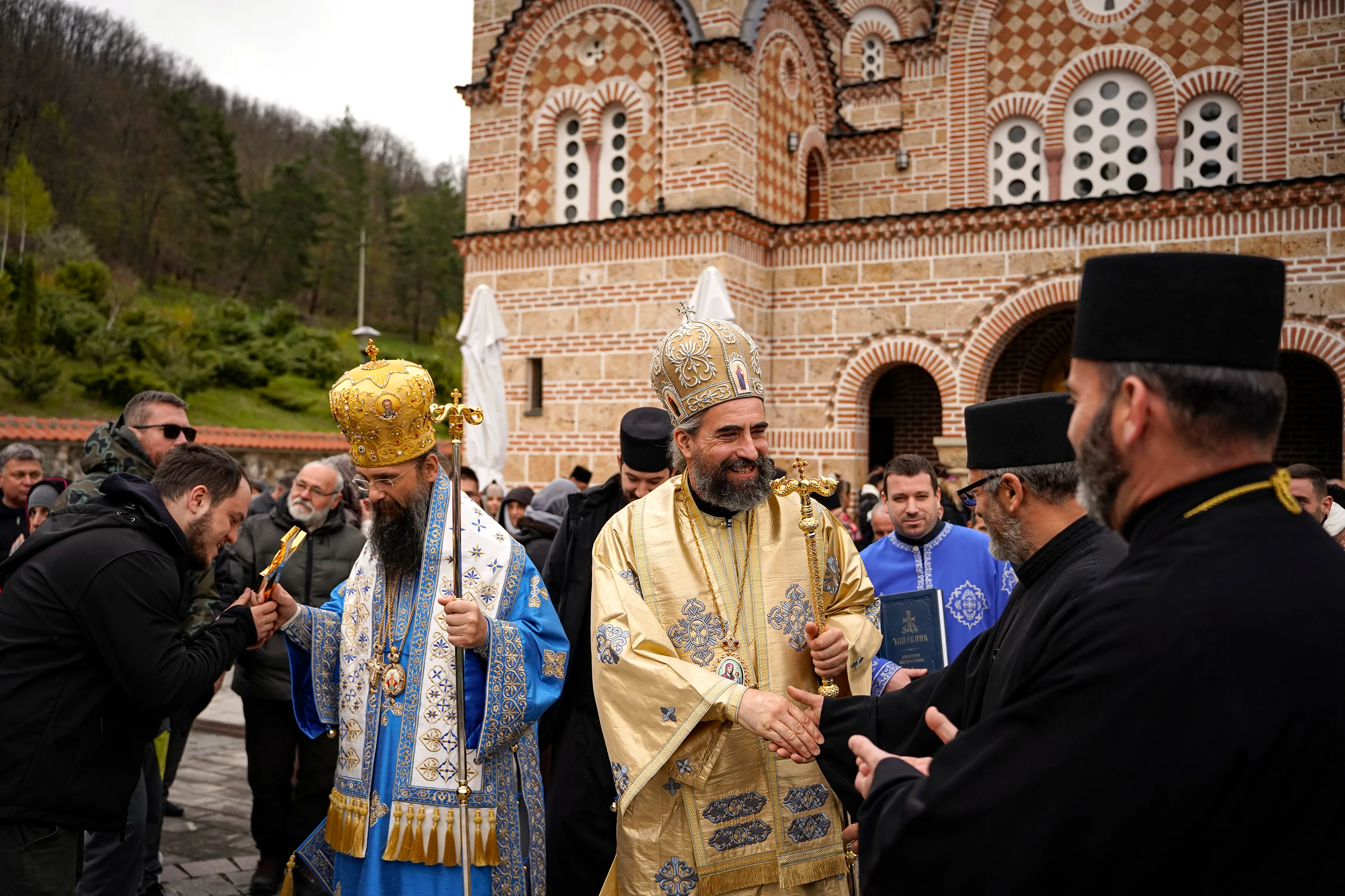 Она (Пресвета Богородица) је увек била заштитница ове обитељи и заштитница свег верног народа који се овде окупља. Наравно, Свети Ава Јустин је њу толико дубоко разумео, волео и прослављао и оставио је и нама да то наставимо. Удостојио се да се роди и да се престави на Благовести. Зато, Благовести обележавамо овако свечано и трудимо се да будемо добра чеда Пресвете Богородице и добра чеда Цркве. Трудимо се да њену топлу молитву и матерински загрљај показујемо и другима и да се љубав Христова шири међу нама- поручио је Владика Исихије, благосиљајући сабране да Покров Мајке Божје увек буде над њима.