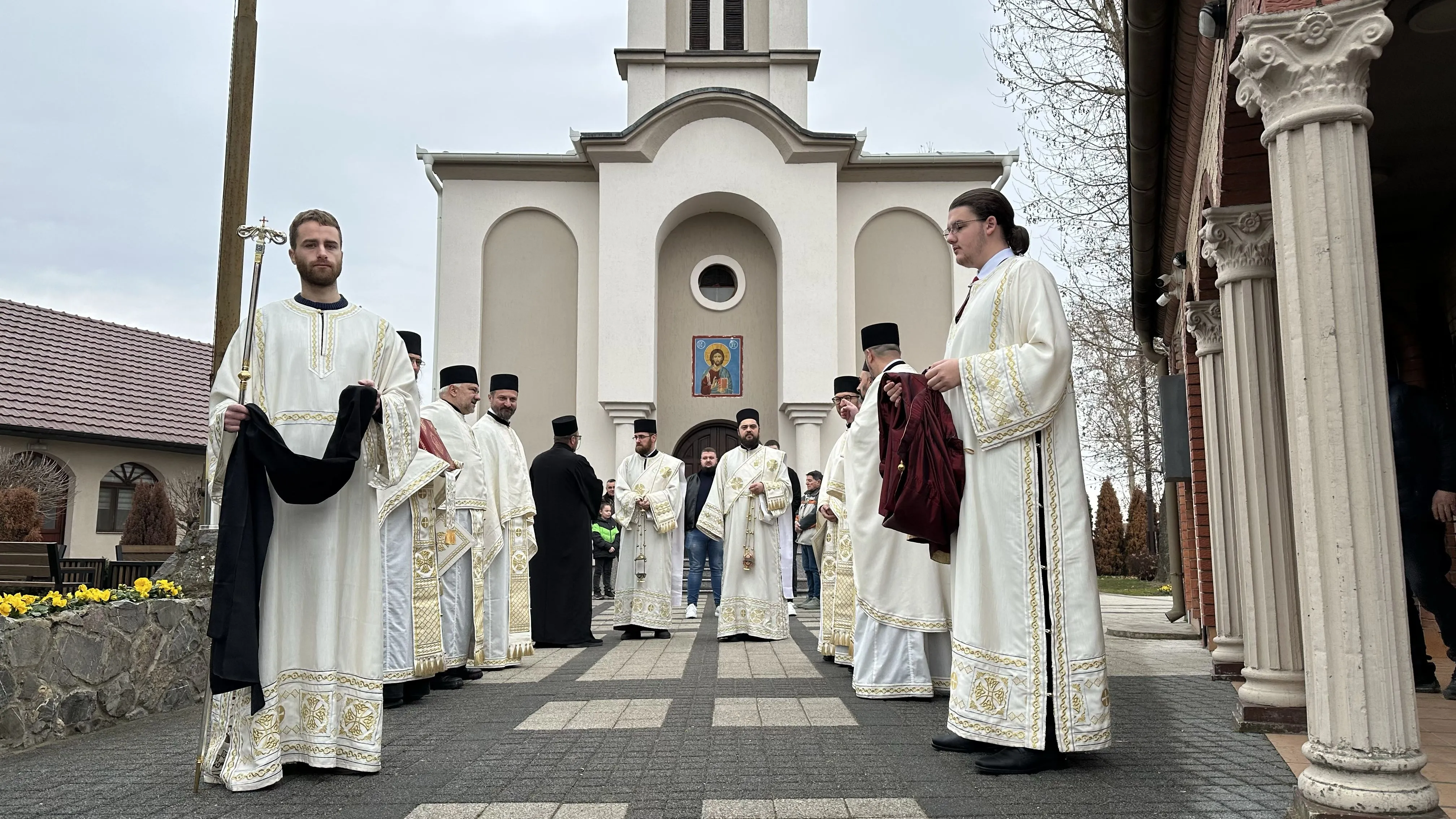 На крају свете Литургије, присутнима се обрадио епископ Јеротеј, који је заблагодарио на радости евхаристијског сабрања и поучном слову оцу Драгану Карану, професору Православног богословског факултета, свештенству и верном народу.