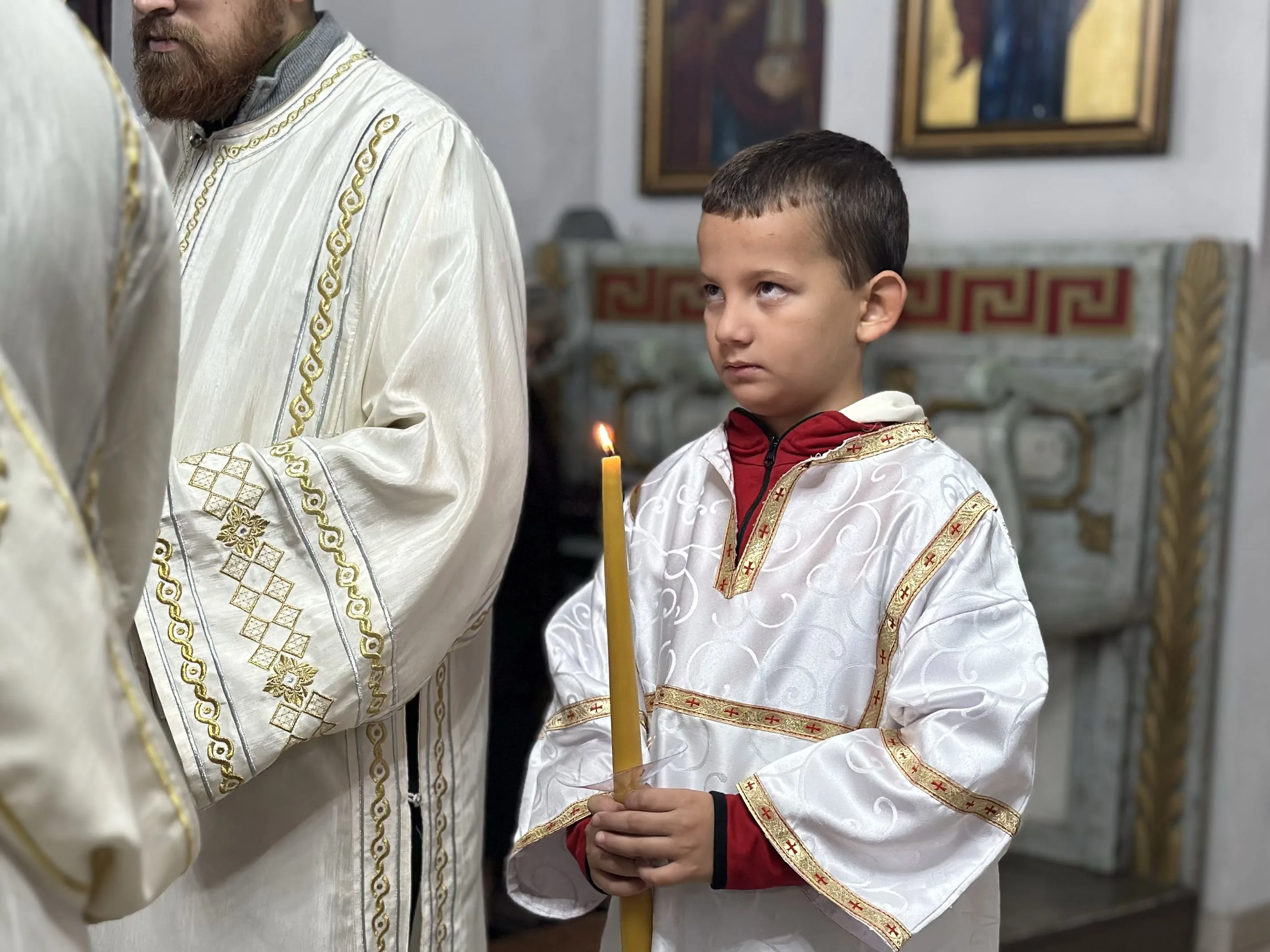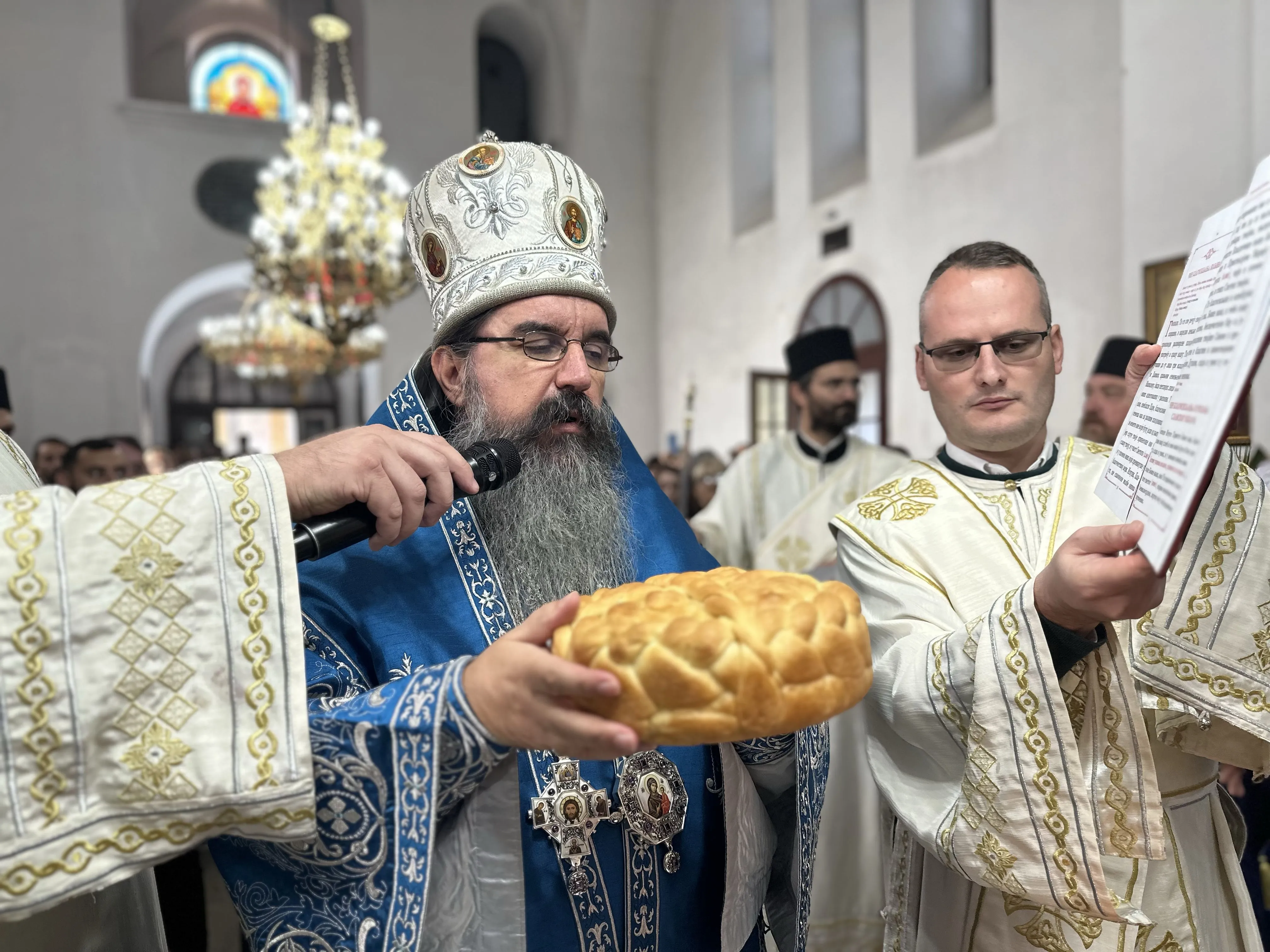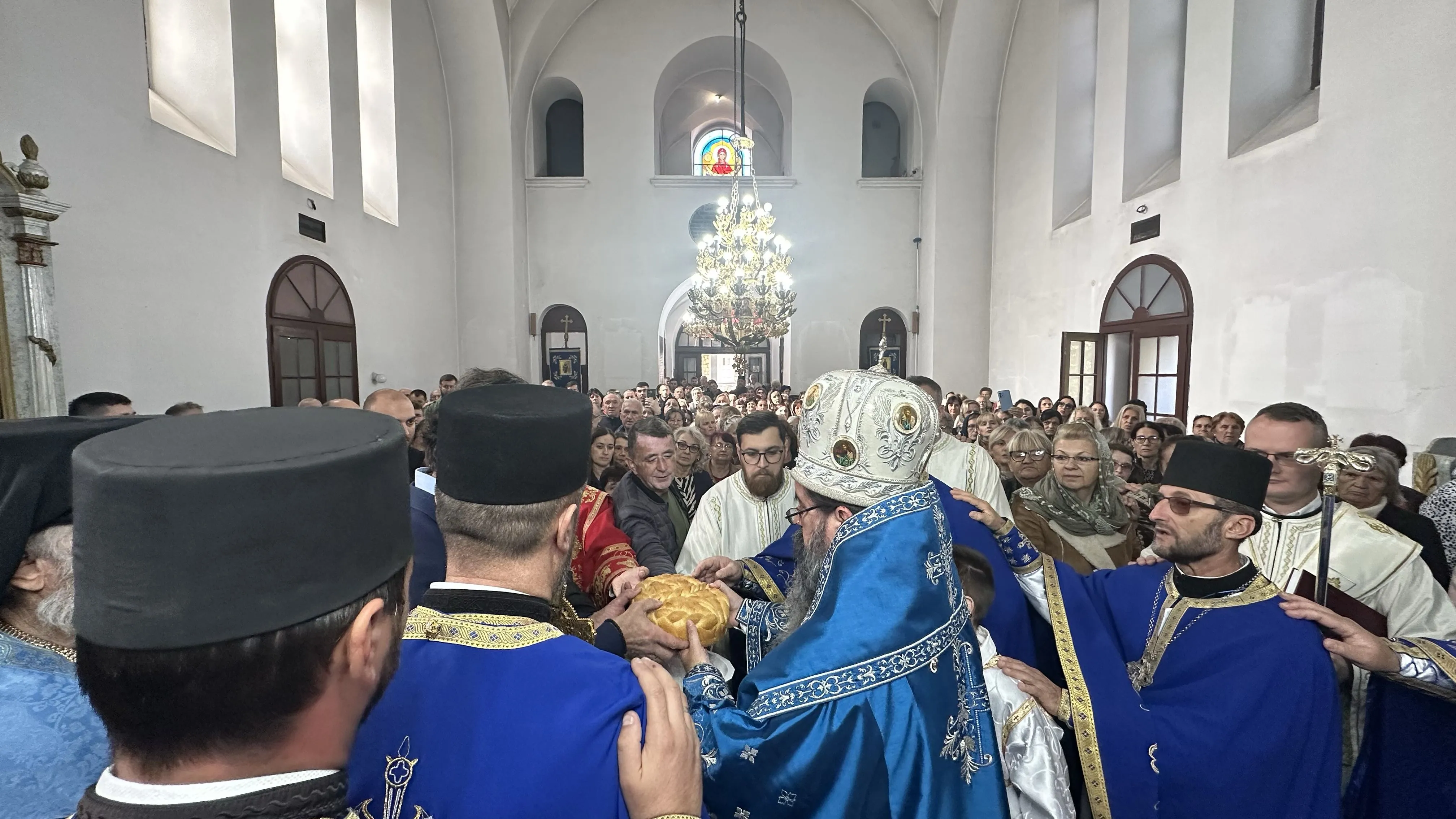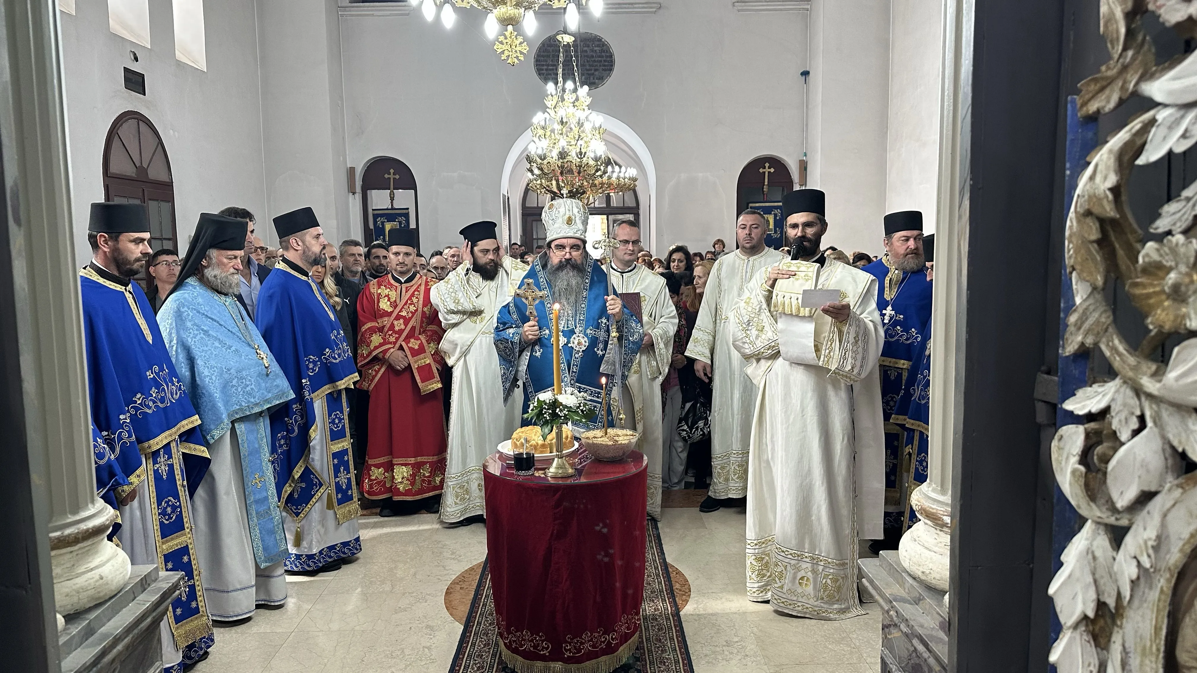 На крају свете Литургије, након троструког опхода око храма, освештани су принесени славски дарови.