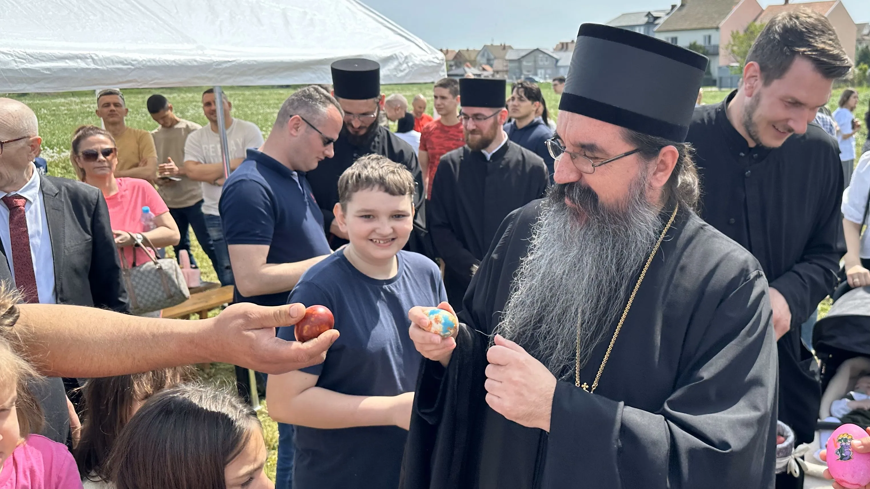Епископ Јеротеј је освештао васкршња јаја, а потом је уследила туцијада најмлађих Шапчана.