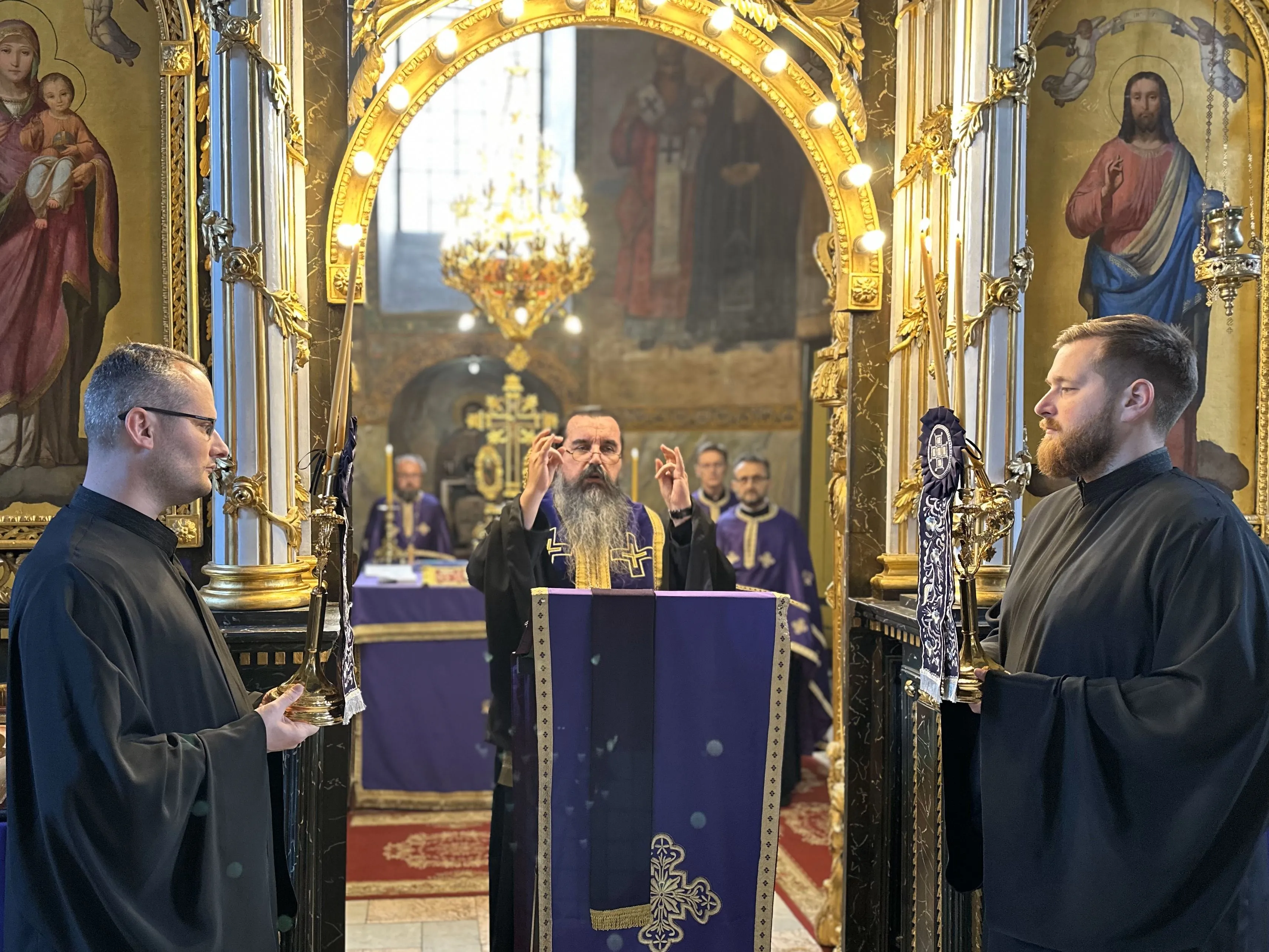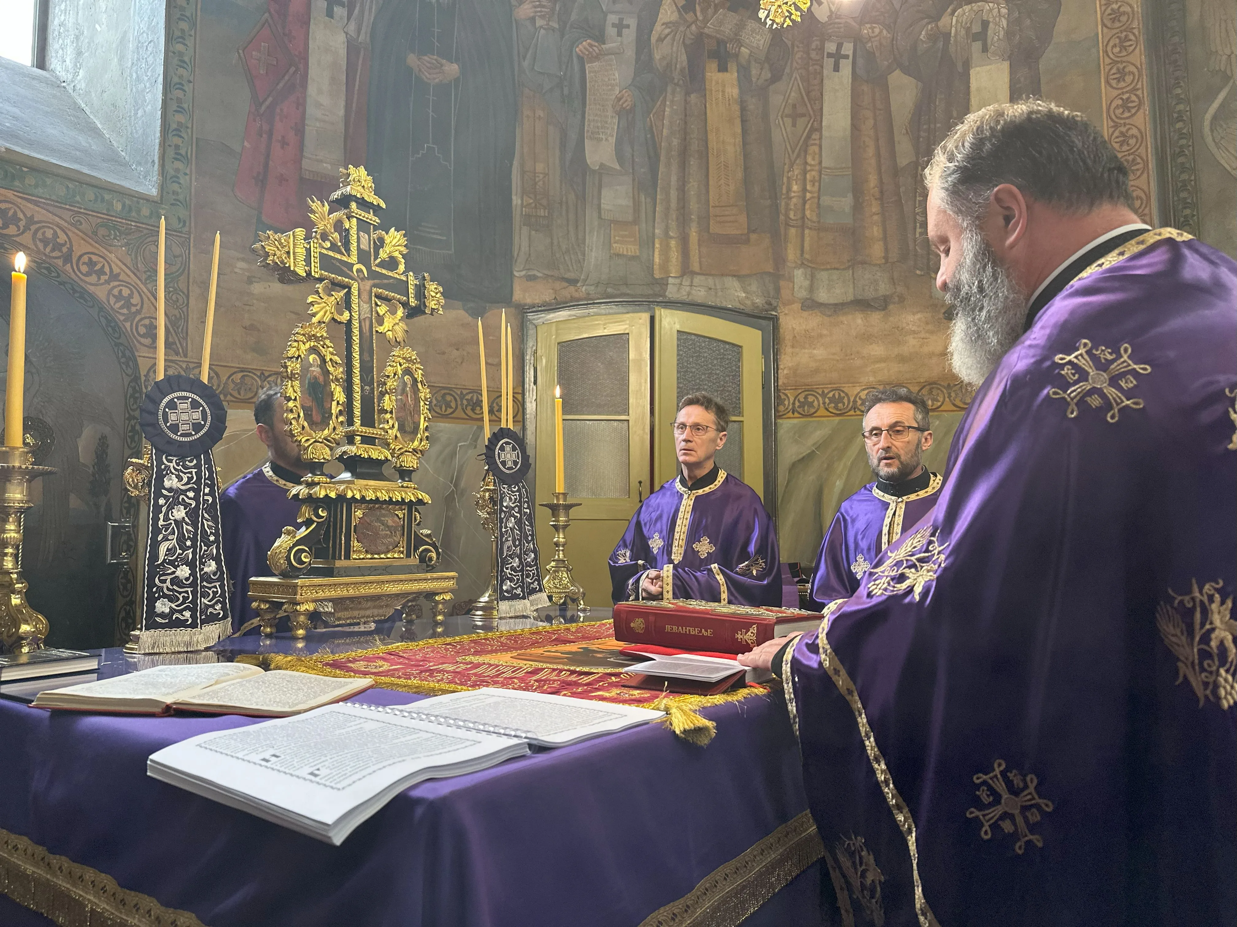„Данашњи дан је страшан. Многи велики светитељи су на данашњи дан били запрепашћени и у страхопоштовању су ћутећи гледали и посматрали како је Господ на крсту распет. На данашњи дан Бог је умро и то је та страшна тајна која се данас десила, али пошто Бог не може да умре, Он је узео на себе грехе свих људи и читавог човечанства, исцелио нас и даровао нам живот вечни. Ову тајну човек умно не може да разуме, него једино када крене да се моли, да се каје, када покуша да се преуми, када покуша да се суочи са својим греховима и страстима, трудећи се да их исправи и да насупрот греха чини врлину. У једном моменту свако од нас дође до својих граница и увиди како је тешко променити себе и како је тешко победити грех. Онда из те перспективе духовне борбе ми можемо да разумемо шта значи опроштај грехова. Тек у тој борби, у том духовном стању, видимо да нас једино Бог може да спасе, односно да нас је спасао, опростио све грехове и даровао нам живот вечни“ – беседио је владика Јеротеј.