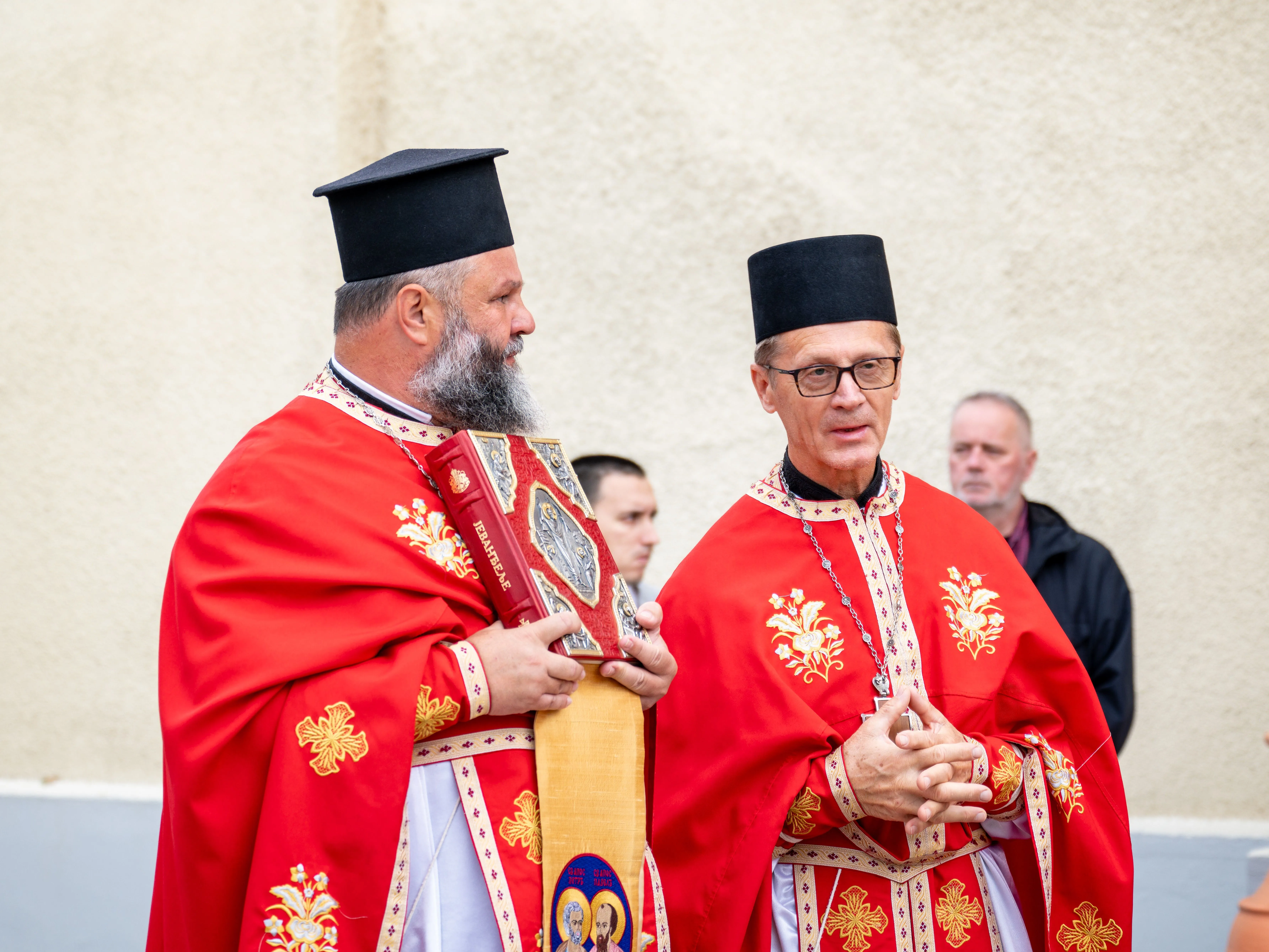 „На данашњи дан сви ми хришћани са поносом и чашћу уздижемо Часни Крст и говоримо да то више није знак срама, као што је то било у време када су распели Господа на њему, њего да је то знак победе. Силом Часног и Животворног Крста, ми хришћани побеђујемо све противнике, пре свега духовне противнике, јер сваки сукоб у ствари се дешава на духовом плану, а онда се то преноси на телесни план. Све почиње од мисли, како рече један наш познати духовник двадесетог века да какве су ти мисли, такав ти је и живот. Крст је пре свега оружје у том мисленом свету, а са друге стране и у овом свету ми се знаменујемо Часним Крстом да бисмо исповедили своју веру приликом обреда и молитве. Тако сведочимо своју веру и не стидимо се своје вере. Потребно је да будемо храбри, јер видимо да се у свету тражи да се више не показује Крст, а наш Спаситељ је страдао на Крсту за спасење свих људи. Нама је дата наша православна вера да се кроз њу спасавамо, а данашњи празник нас учи оним Господњим речима да нема веће љубави него када положимо живот свој за свога ближњег“ – беседио је владика Јеротеј.