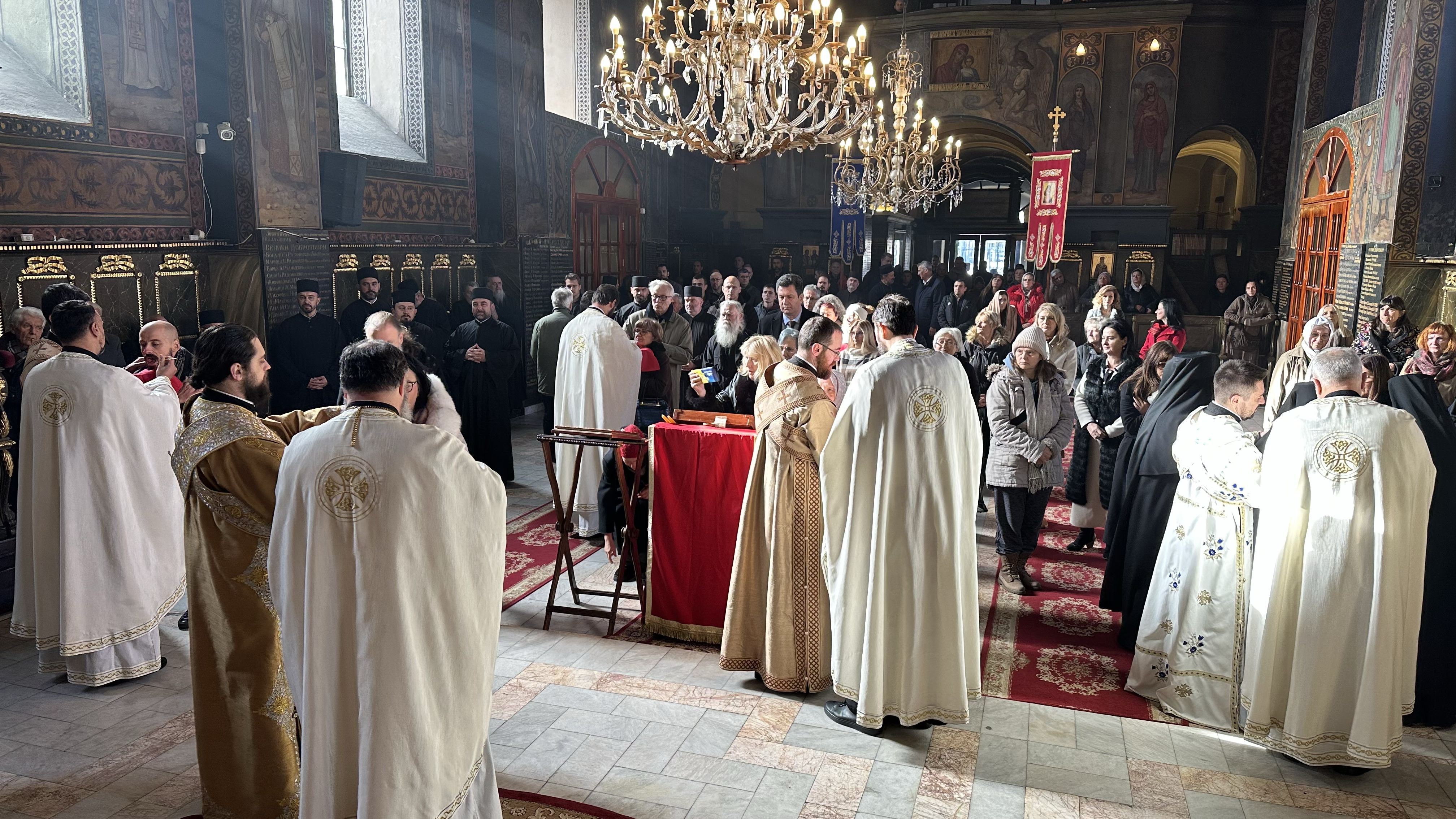 Празничном беседом, после читања светог Јеванђеља, присутнима се обратио протојереј Ђорђе Стојисављевић (ВИДЕО), а након што су освештани славски дарови, свештенству, гостима и верном народу, поздравно слово и речи благодарности упутио је епископ Јеротеј: