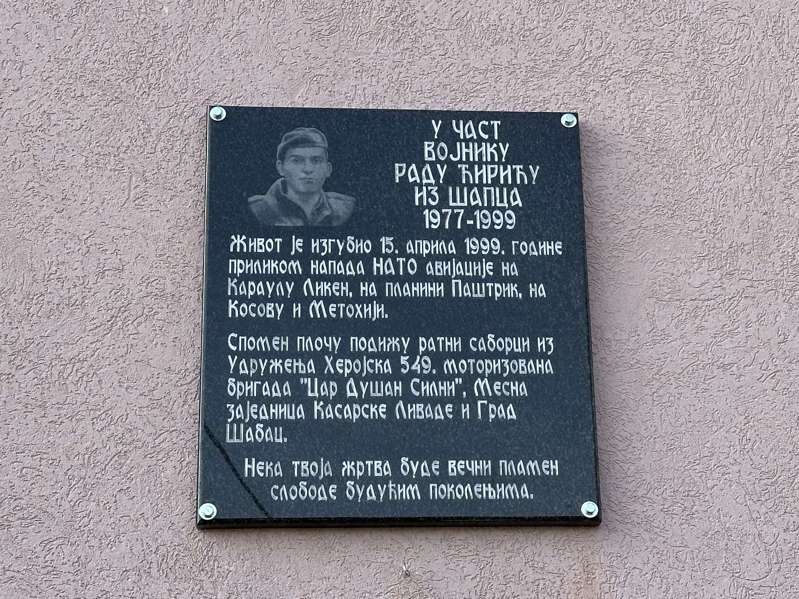 Српски јунак Раде Ћирић је рођен 1977. године у Шапцу, у насељу Касарске Ливаде. Бранећи Отаџбину, као члан славне и херојске 549. моторизоване бригаде Цар Стефан Душан Силни, је јуначки пострадао у борби са вишеструко јачим непријатељем и уселио се у Царство Бога живога на Васкрс 1999. године.