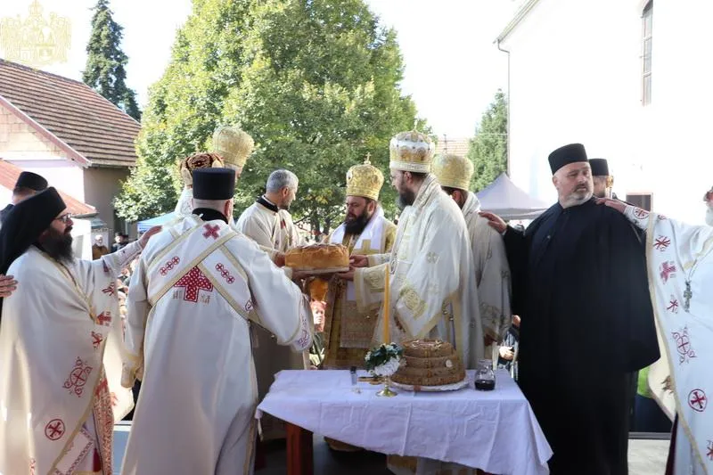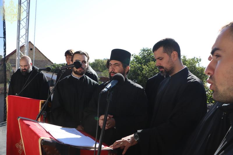 На светој архијерејској Литургији началствовао је Његовo Преосвештенство Епископ ваљевски господин Исихије, а саслуживали су Високопреосвећени Митрополит бачки господин др Иринеј, Преосвећена господа епископи осечкопољски и барањски Херувим, шабачки Јеротеј, мохачки Дамаскин, свештеници и ђакони Епархије бачке. Током малог входа на светој Литургији, Високопреосвећени владика Иринеј је одликовао правом ношења напрсног крста протојереје Мирослава Милића и Срђана Перића.