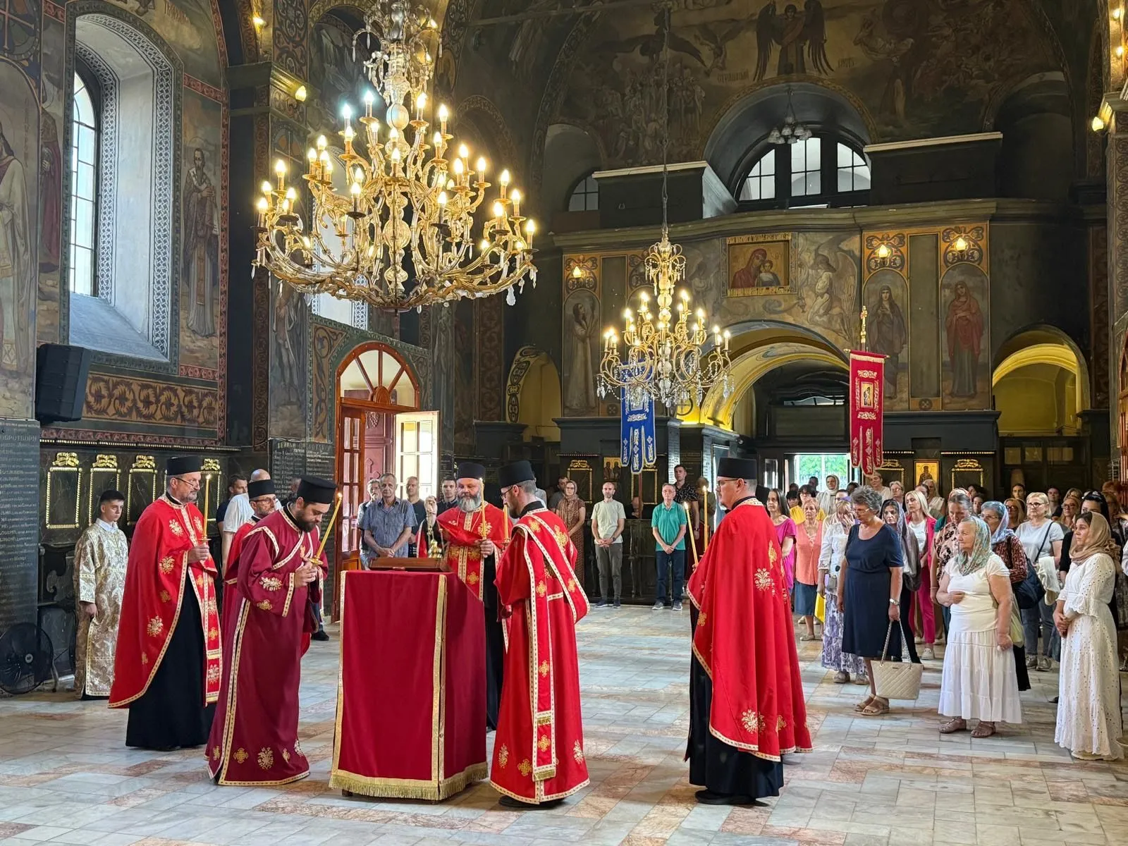 Преосвећени Епископ шабачки г. Јеротеј је служио 11. јула 2025. године, на навечерје славе храма, празнично бденије у Саборном храму Светих апостола Петра и Павла у Шапцу.
