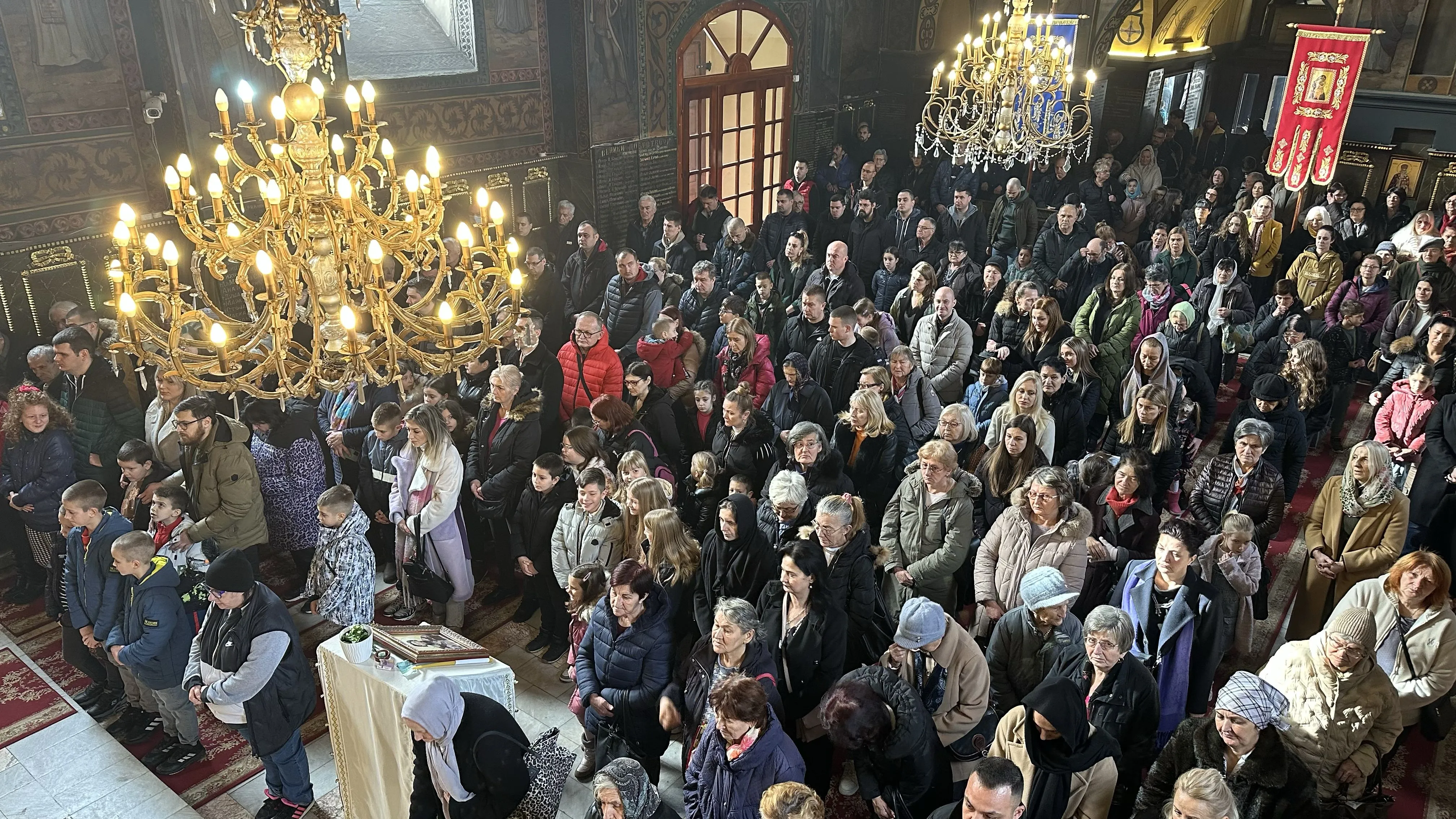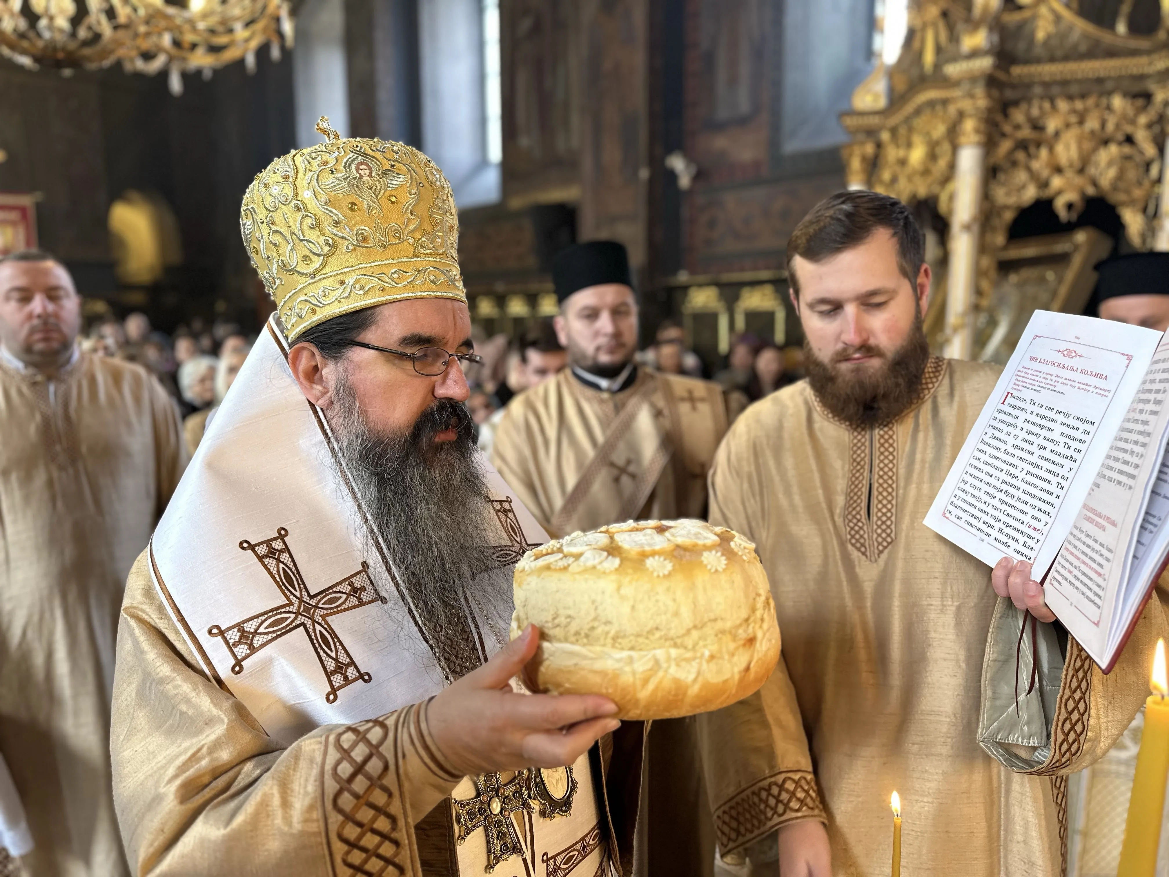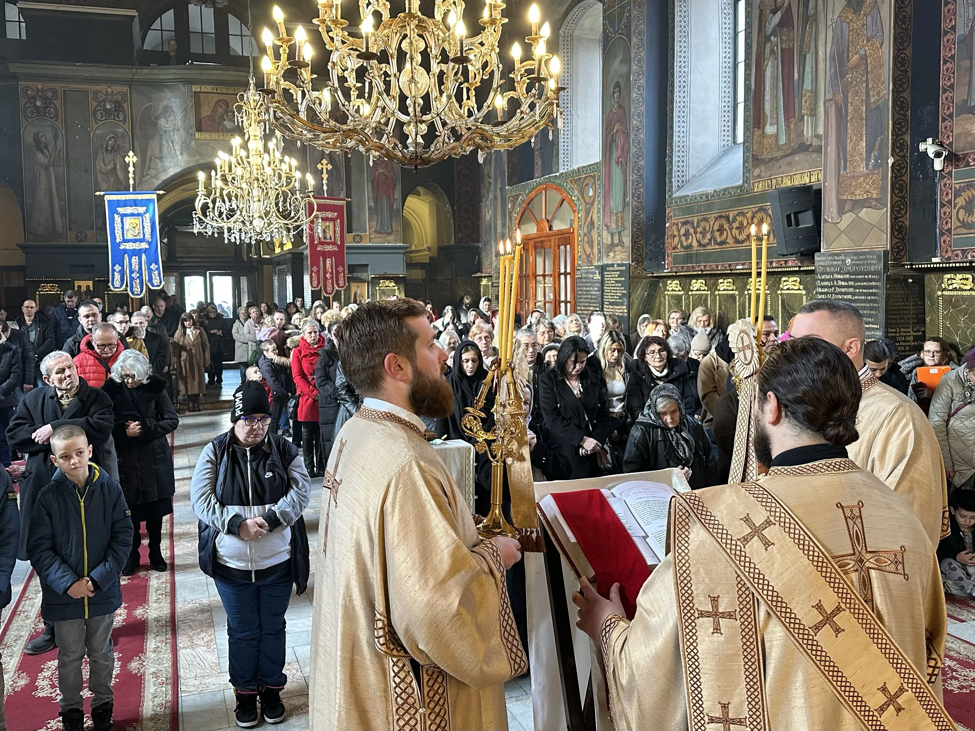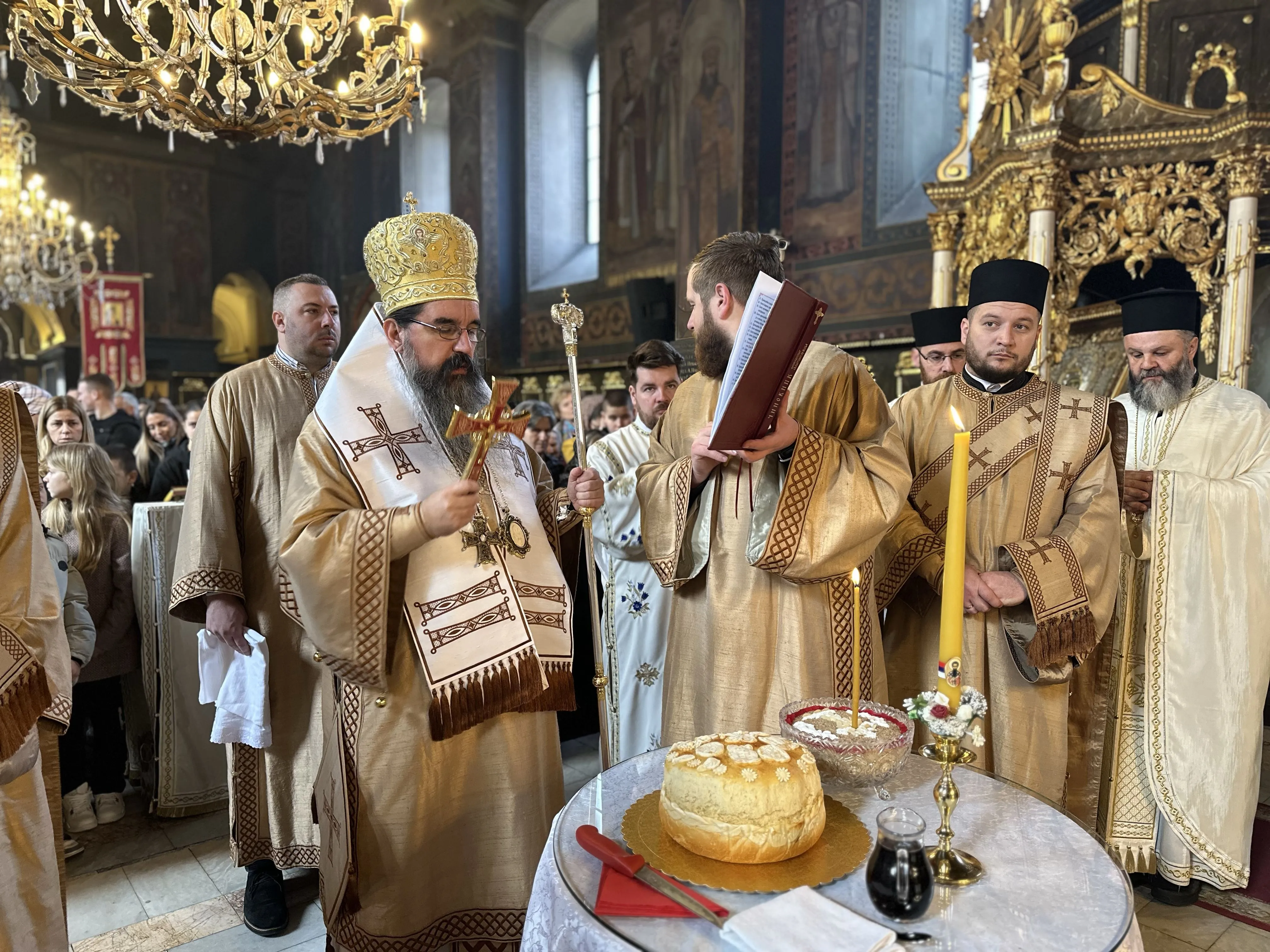 Евхаристијску беседу је произнео протојереј-ставрофор Драгиша Стефановић, намесник први шабачки, а на крају свете Литургије епископ Јеротеј је освештао принесене славске дарове и поделио пакетиће нашим најмлаћим верницима, који су рецитовали песмице у славу и част Светог Саве.