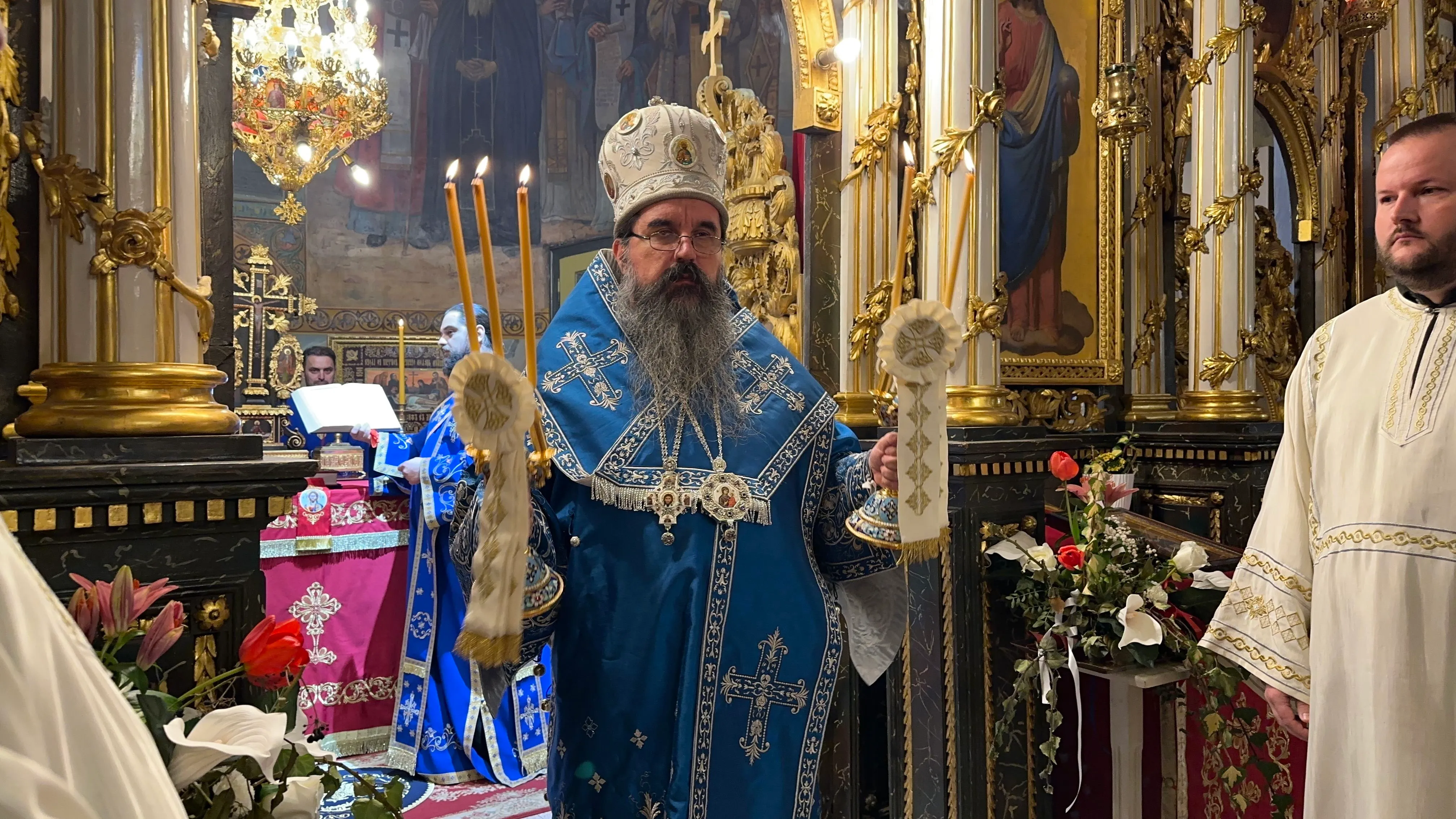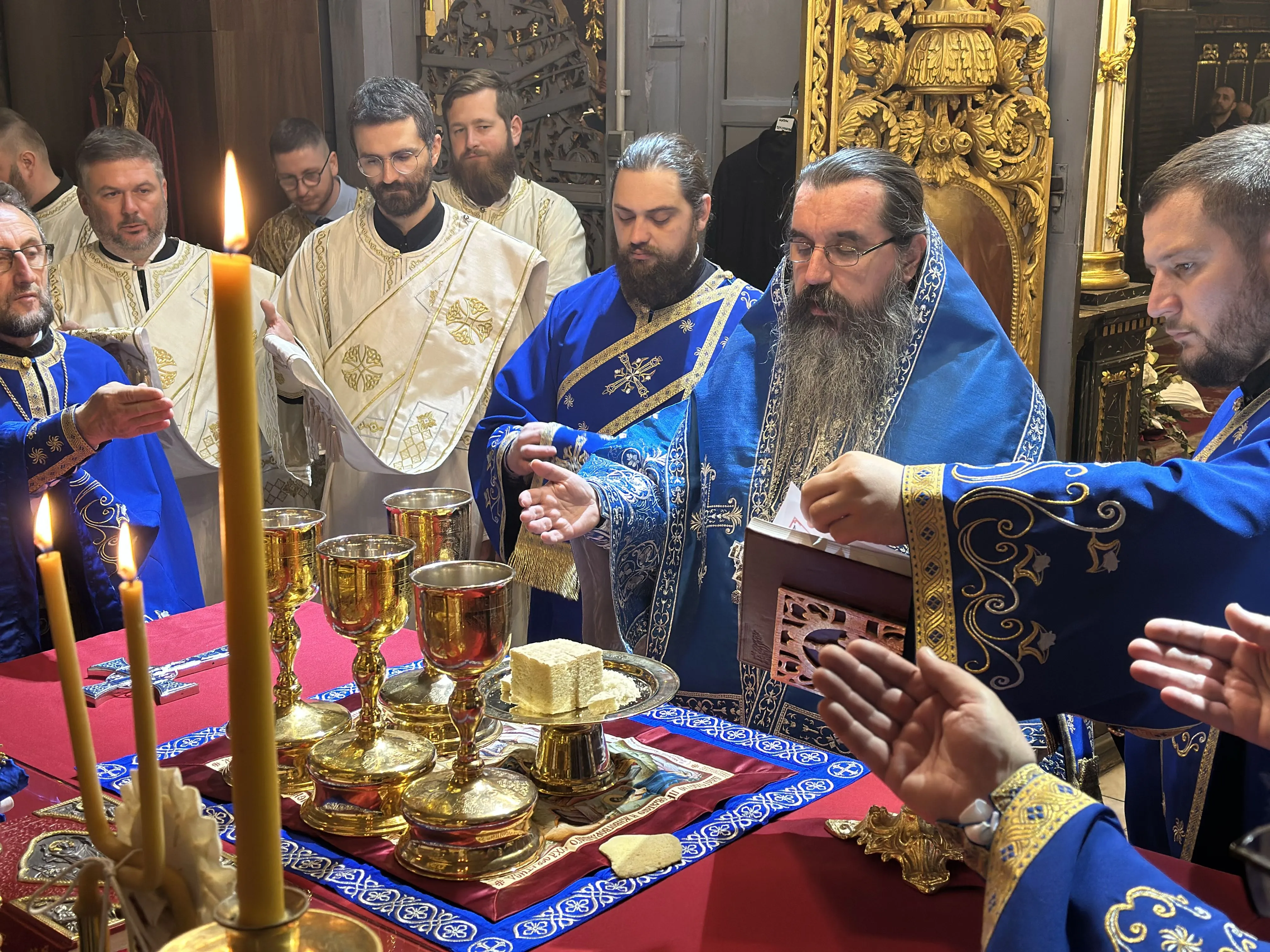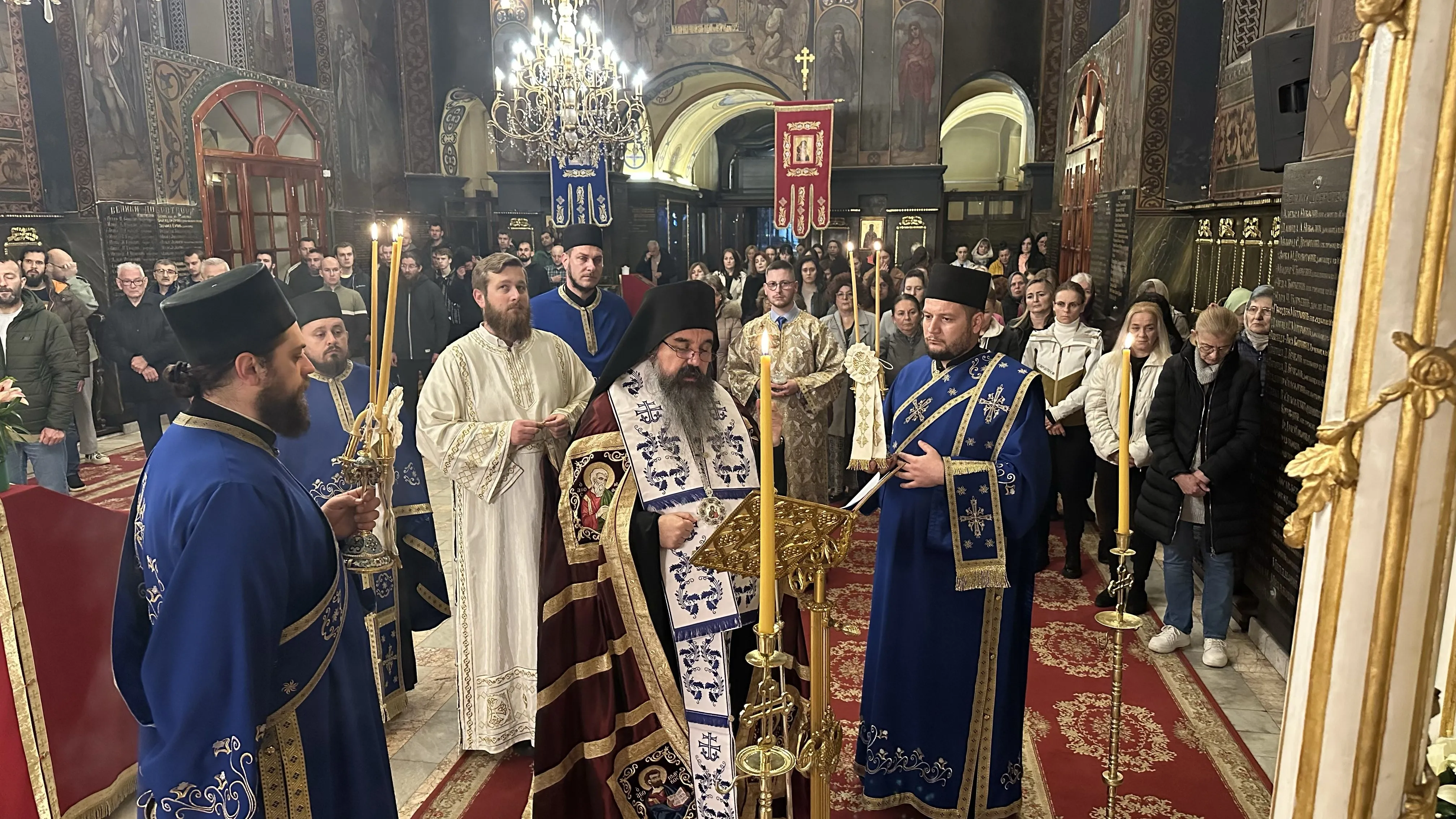 „Данашњи празник се назива суботом акатиста. Славимо спомен на предивну химу акатиста Пресветој Богородици, која се иначе чита и ван Великог поста. Из овог акатиста Пресветој Богородици су настали сви остали акатисти посвећени светитељима и разним чудима и догађајима који се читају у нашој Цркви. Акатист Пресветој Богородици није само једна похвална песма Богородици, него је једно дубоко теолошко дело. Писао га је Патријарх Сергије у седмом веку када је била опсада Цариграда и тада је спевана ова песма у знак благодарности због тога што је град ослобођен. И у нашој Цркви се овај празник празнује малим свеноћним бдењем које смо служили. Започели смо службу у претходном дану, а после поноћи, када смо ушли у други дан, служили смо свету Литургију – беседио је владика Јеротеј.