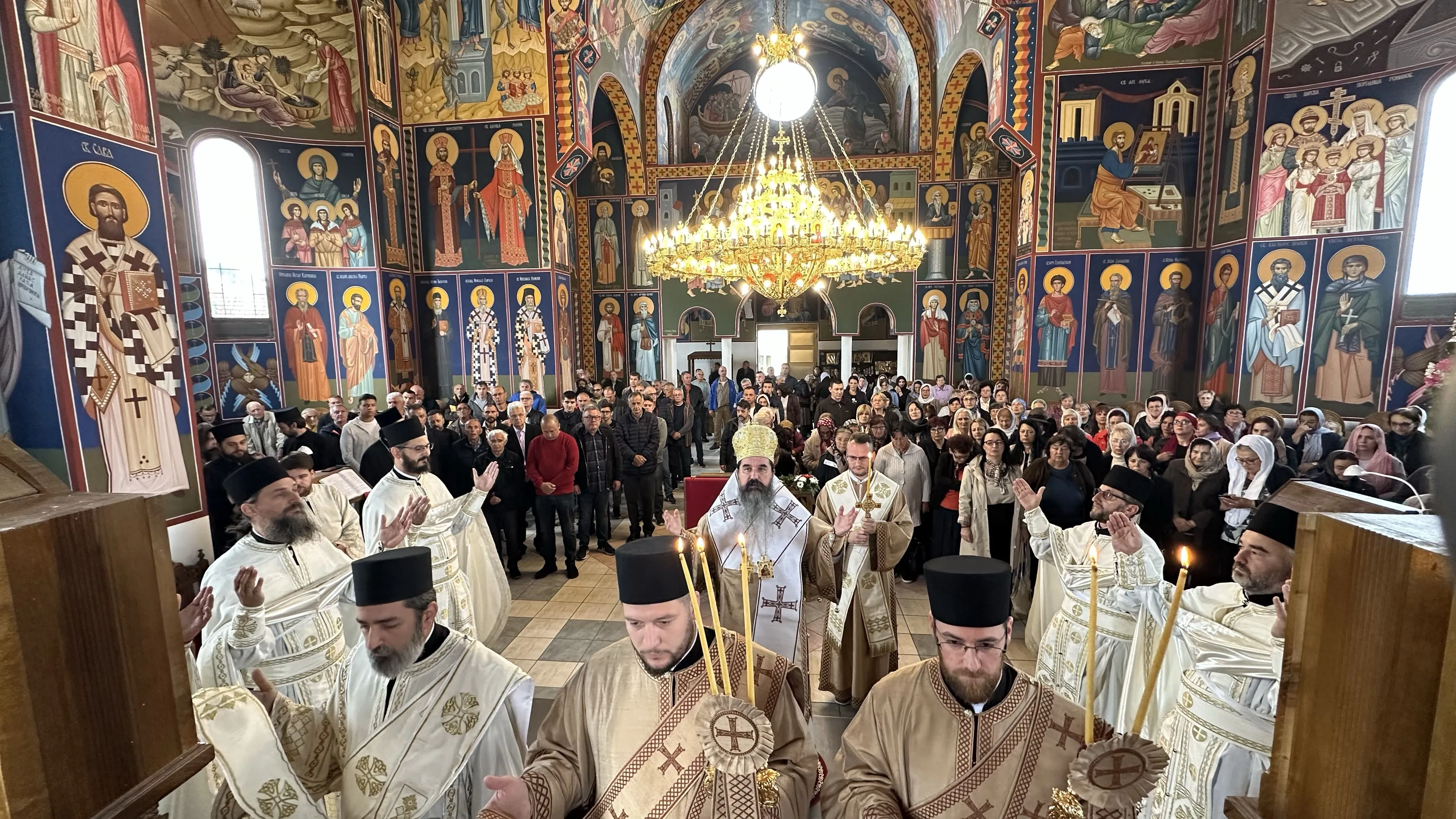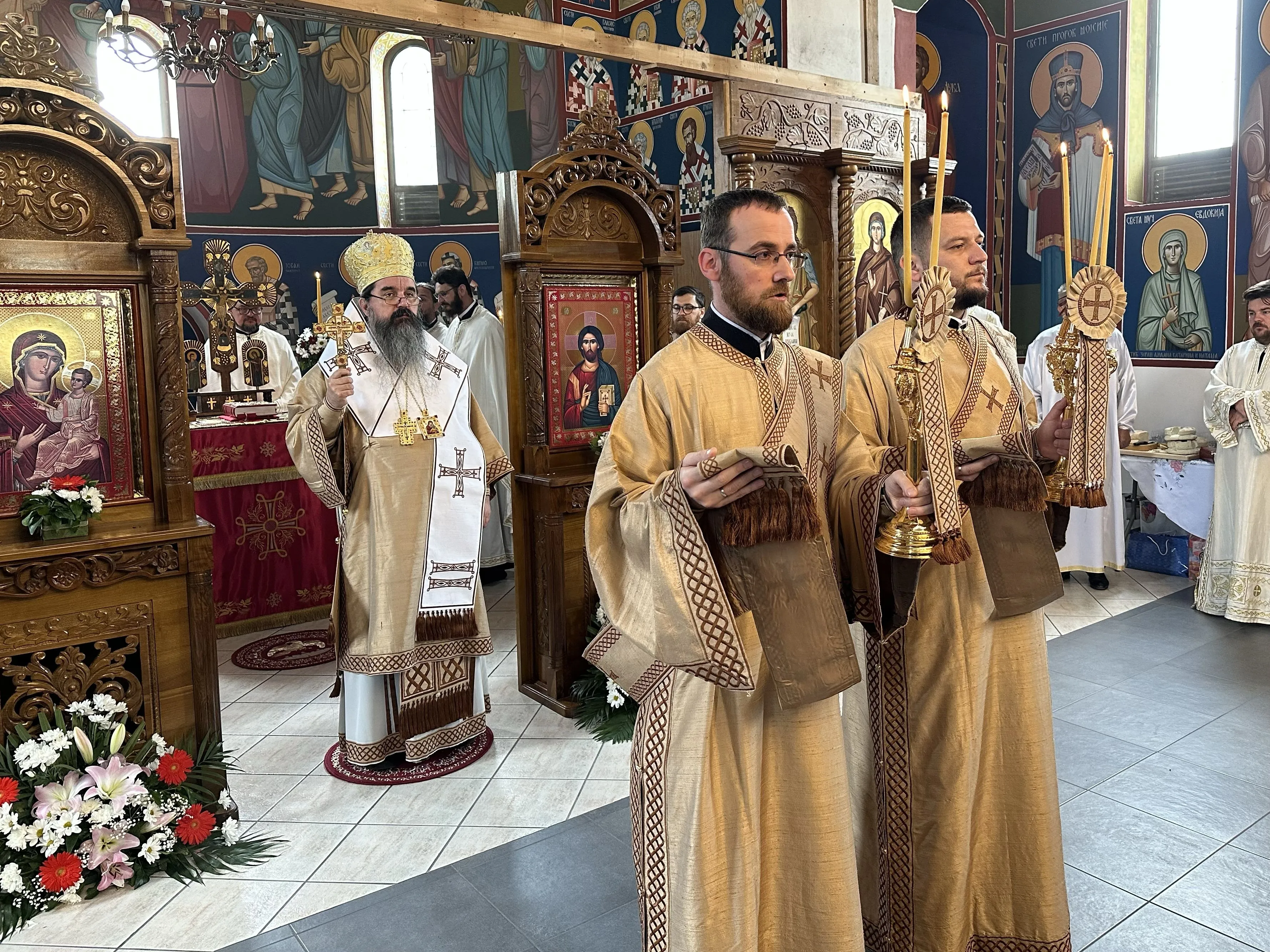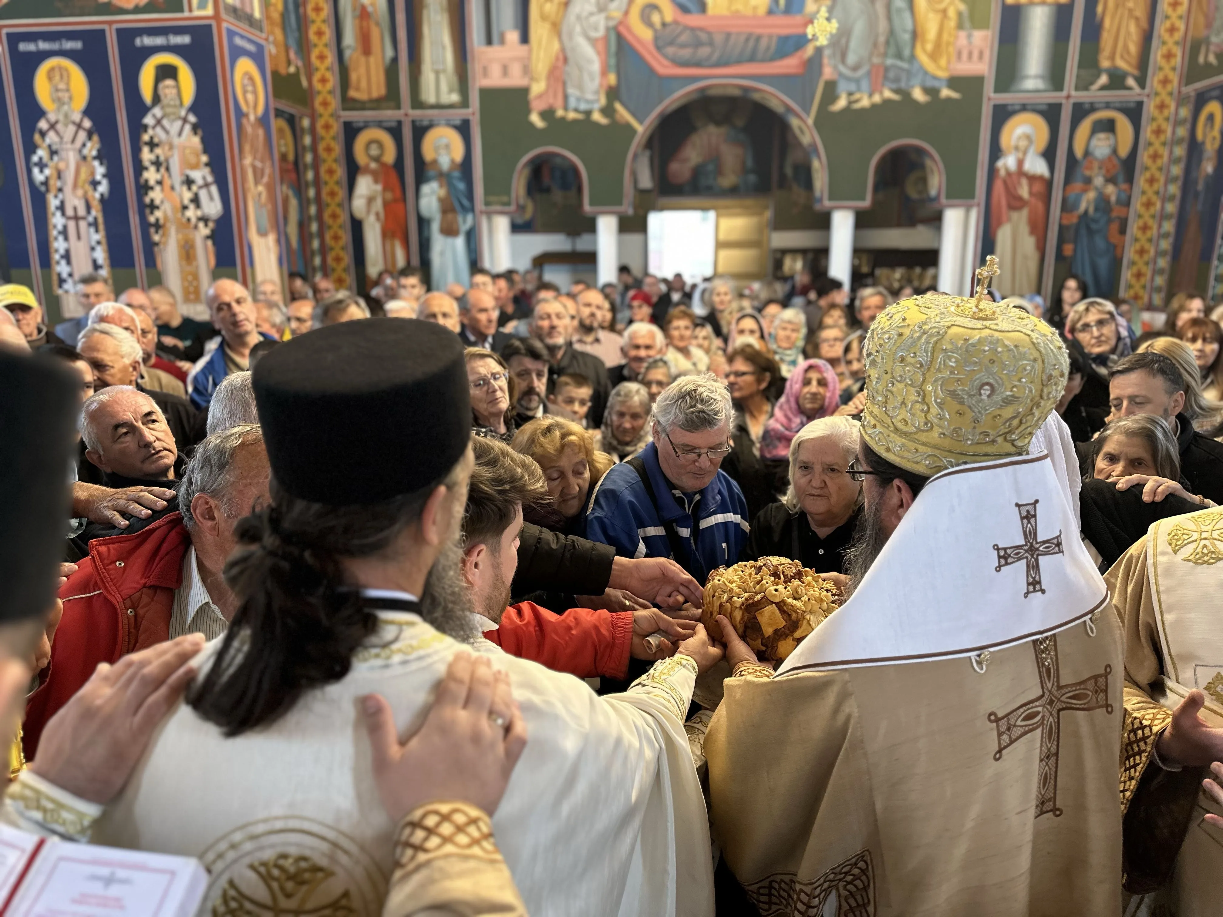 На крају свете Литургије, након троструког опхода око храма, епископ Јеротеј је освештао славске дарове и честитао свештенству и верном народу храмовну славу и данашњи празник.