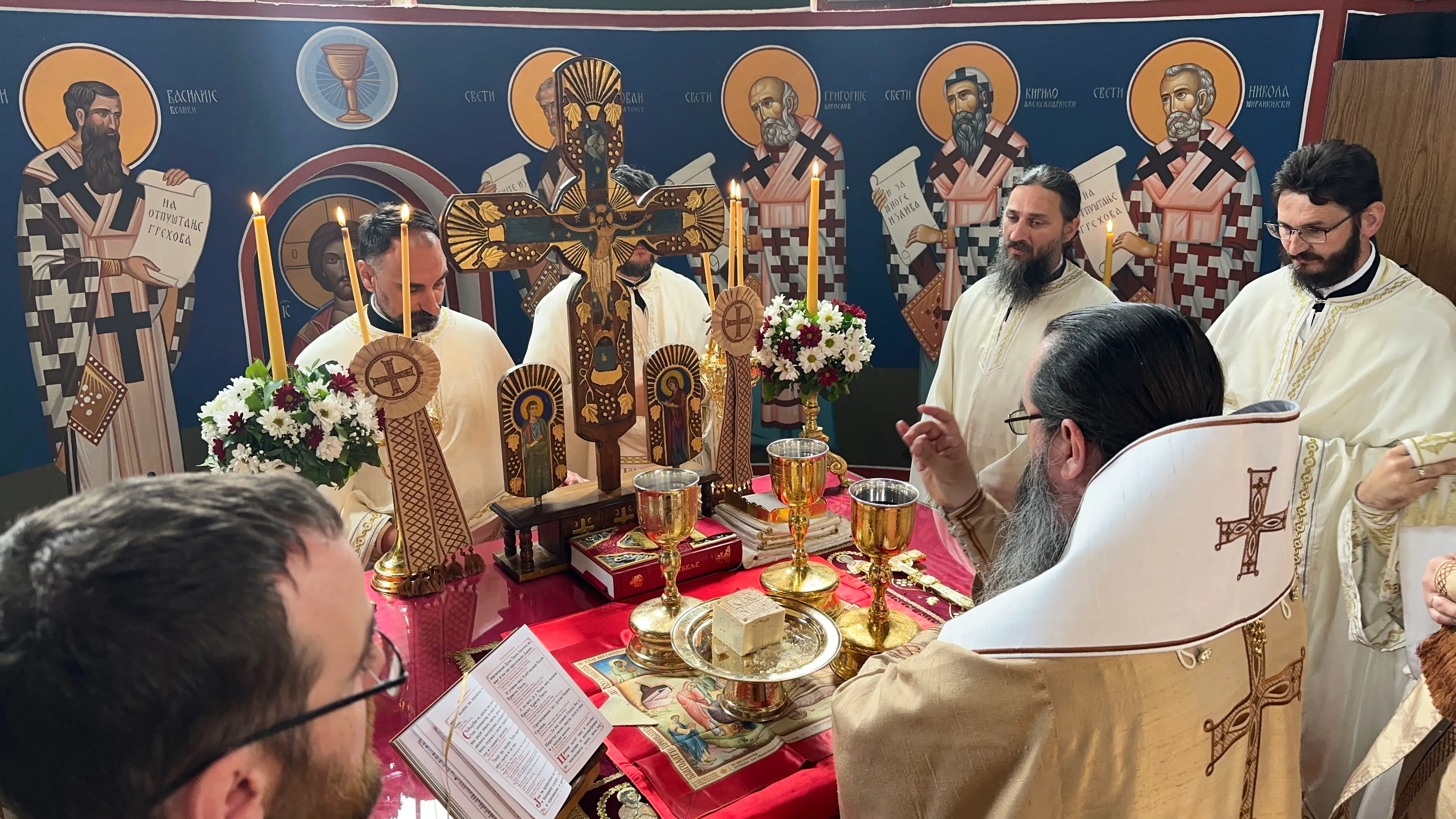 Евхаристијску беседу, по благослову архијереја, произнео је јереј Никола Ковачевић, старешина храма Светог Василија Острошког у Касарским Ливадама.