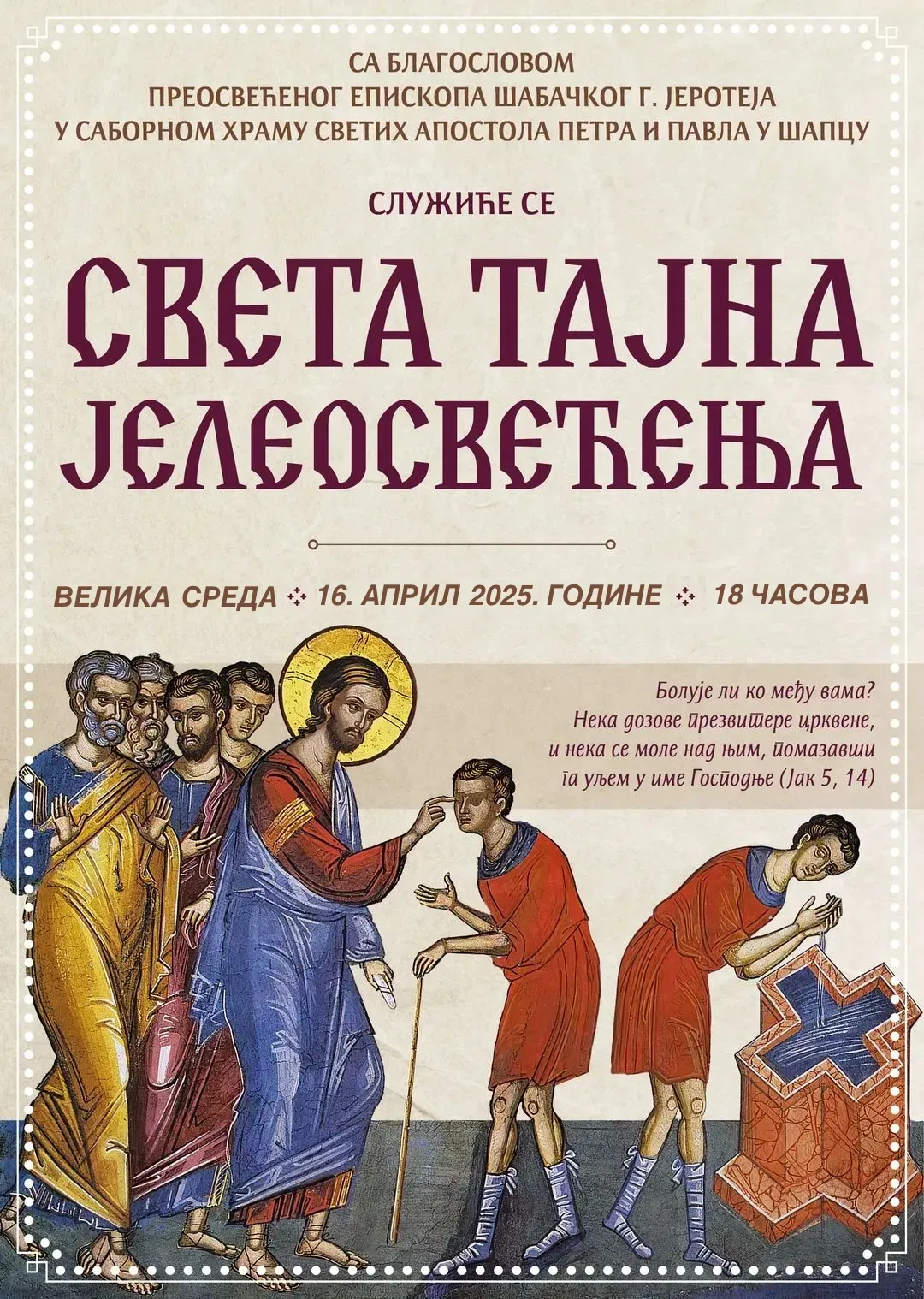 У четвртак, 17. априла 2025. године, Његово Преосвештенство Епископ шабачки г. Јеротеј је началствовао последовањем Светих и спасоносних страдања Господа Исуса Христа у шабачком Саборном храму Светих апостола Петра и Павла.